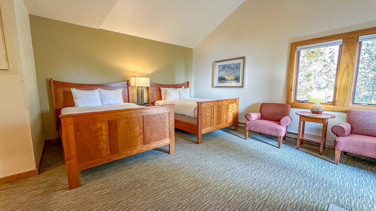 Surrounded by beautiful scenery, tranquil waters, and vast forests, Poplar River Condo 541 Riverside Double Guestroom features two full-sized beds.