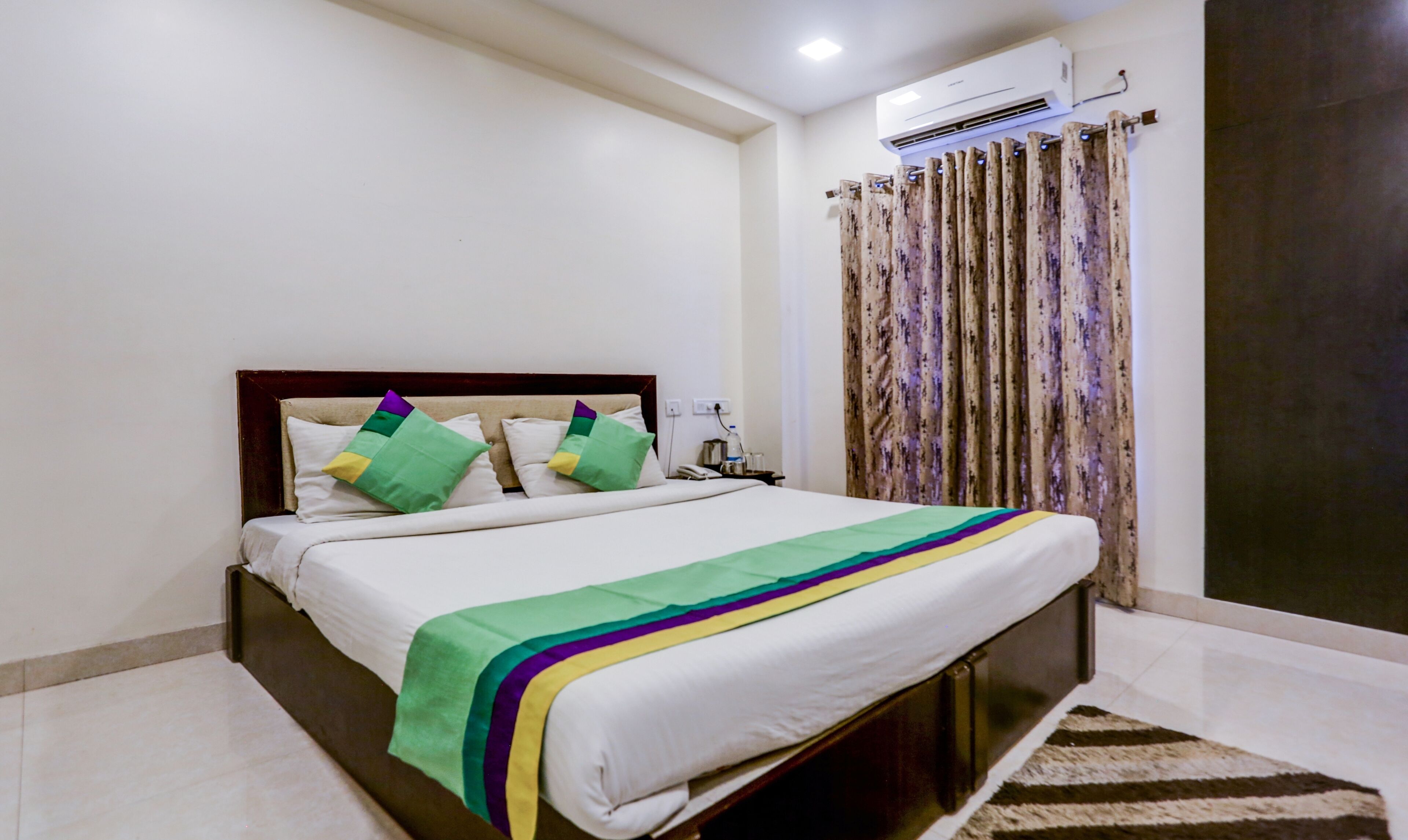Our Standard Double Room with AC is perfect for couples or two guests looking for a cozy and comfortable stay. The room features a king-size bed, split air conditioning, a wardrobe for your belongings, and an attached private bathroom. With all essential amenities and fresh linens provided, it ensures a relaxing and pleasant experience. Ideal for both business and leisure travelers, this room offers a perfect balance of comfort and convenience. to explore is right outside the door of this place.