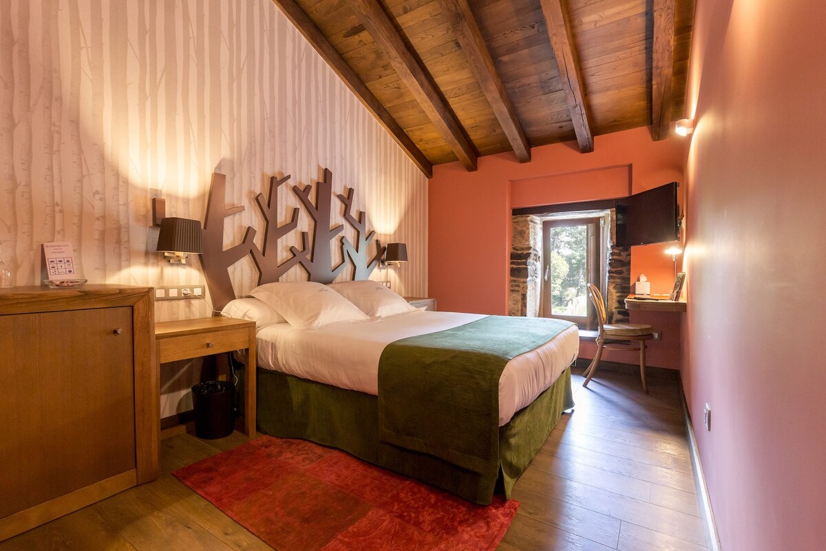 With its panoramic mountain view, Pazo A Freiria hotel in Puebla de Trives offers free Wi-Fi in a rural environment. Cabeza Grande de Manzaneda Ski Station is 9.3 mi away. Rustic rooms in Pazo A Freiria feature a flat-screen TV, furniture including a sofa and a desk, a mini-bar and a private bathroom with a hairdryer. The hotel has a common terrace and general heating. It is set in a 15 hectare ground surrounded by forests and the River Sil Bank. Puebla de Trives town is just 1.2 mi away.
