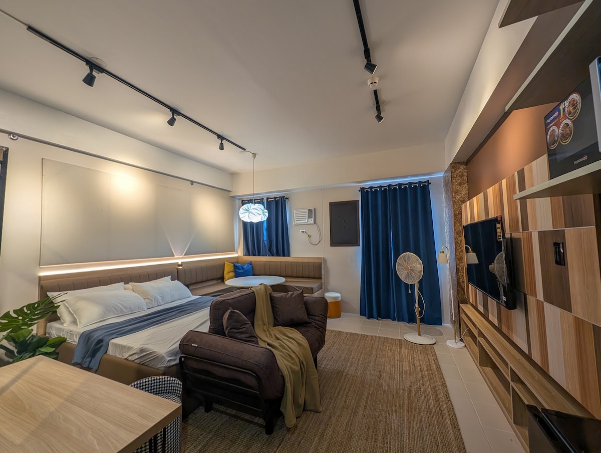Built as a Bridal Suite in mind, this beautiful suite is designed to showcase the beauty and elegance of ladies and gents who'll be attending an important event or occasion. With its' excellent lighting and full-length mirror, you can't help but get your phones and take pictures! This stylish and comfortable unit also has a vanity area convertible as a working desk for those in Work from Home setup. Your heart will definitely skip a beat with this upscale "pretty as a picture" hotel vibe unit!
