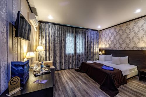 Set in Khimki, 3 km from Sheremetyevo Airport, Hotel Gold Shark offers free airport shuttle. It boasts a restaurant and free WiFi throughout the property. The hotel has a sauna and hammam, and guests can enjoy a drink at the bar. Every room comes with a flat-screen TV with satellite channels. You will find a kettle in the room. The rooms include a private bathroom. Extras include slippers and free toiletries. You will find free shuttle service at the property. Zvenigorod is 46 km from Hotel Gold Shark, while Moscow city centre is 29 km away. Free private parking is available on site.