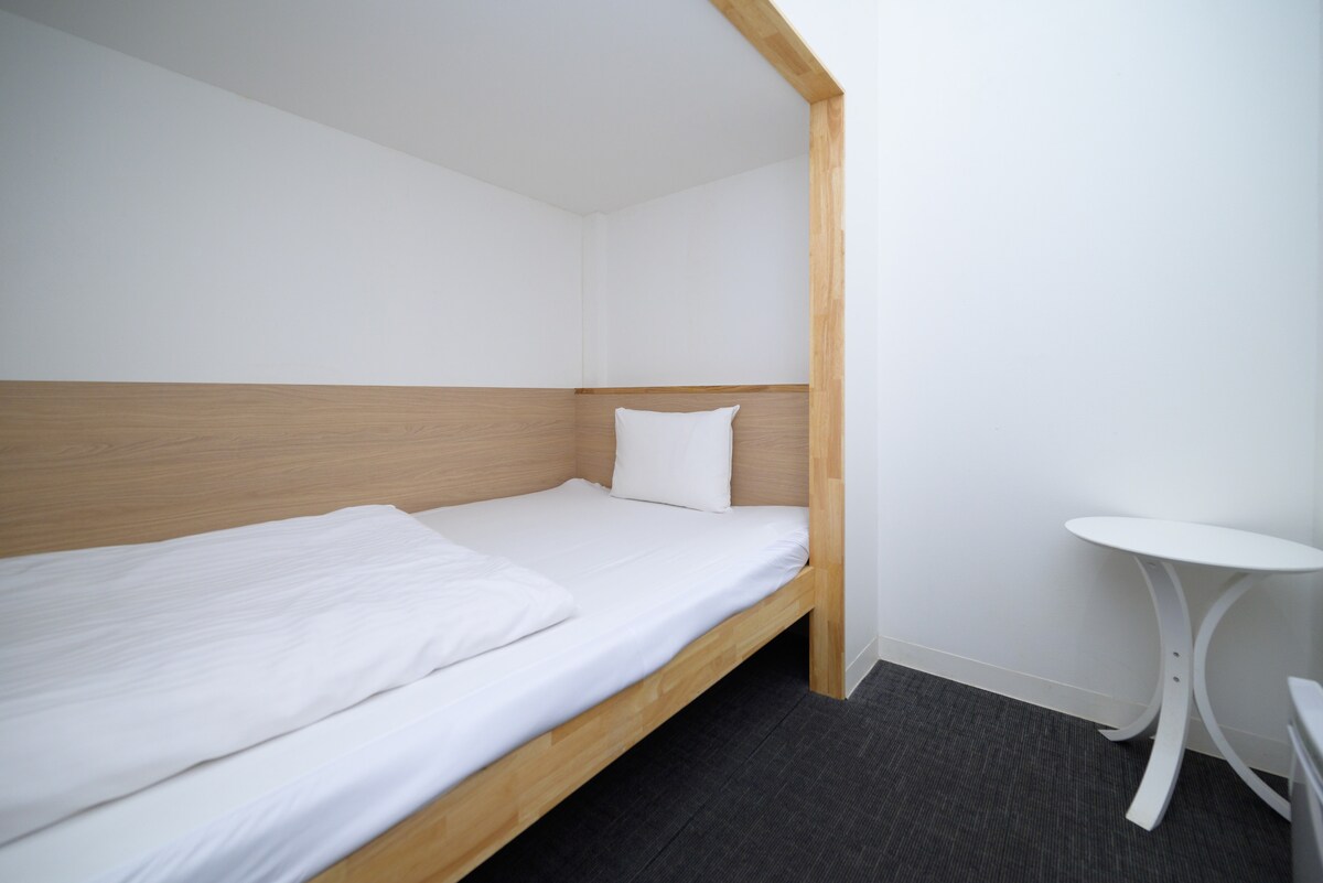 [SHIMASHO-NE] is the private stylish budget hotel room with a window of LESTEL NAHA. The room contains 1 double size bed which accommodates 2 adult guests.