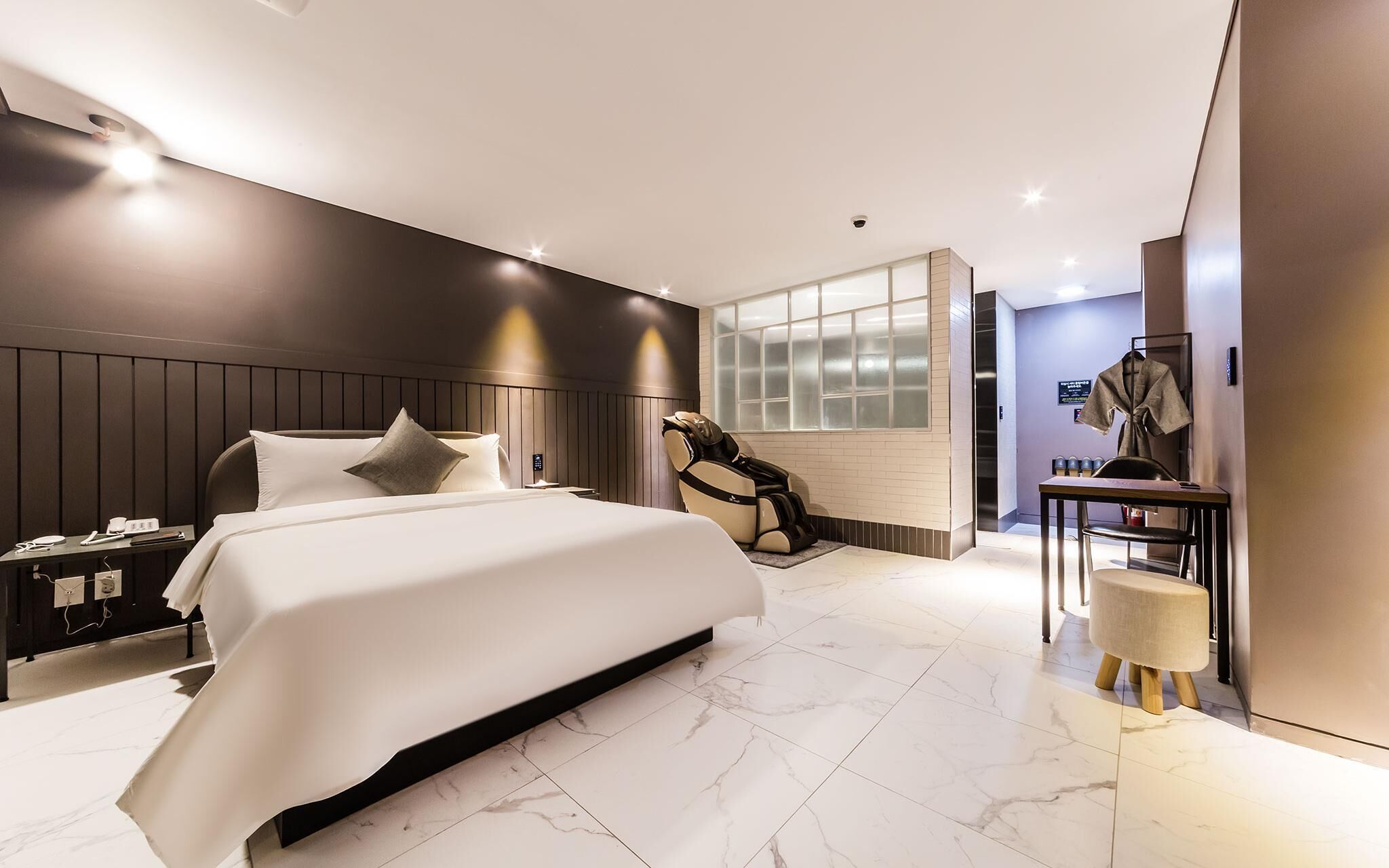 - "Friendly staff" - "Great location" - "Overall, the suite was an excellent choice, offering an inviting and luxurious atmosphere. The staff were exceptionally friendly and attentive, ensuring that all my needs were met during my stay. Additionally, the hotel's location was incredibly convenient, just a short walk from local attractions and restaurants. The only issue I encountered was the lack of hand soap and toothbrushes provided in the suite. I wasn't a fan of having to pay separately for these items from the vending machine. Despite this minor inconvenience, my experience was truly wonderful, especially highlighted by a delightful massage chair that provided much-needed relaxation after a long day."