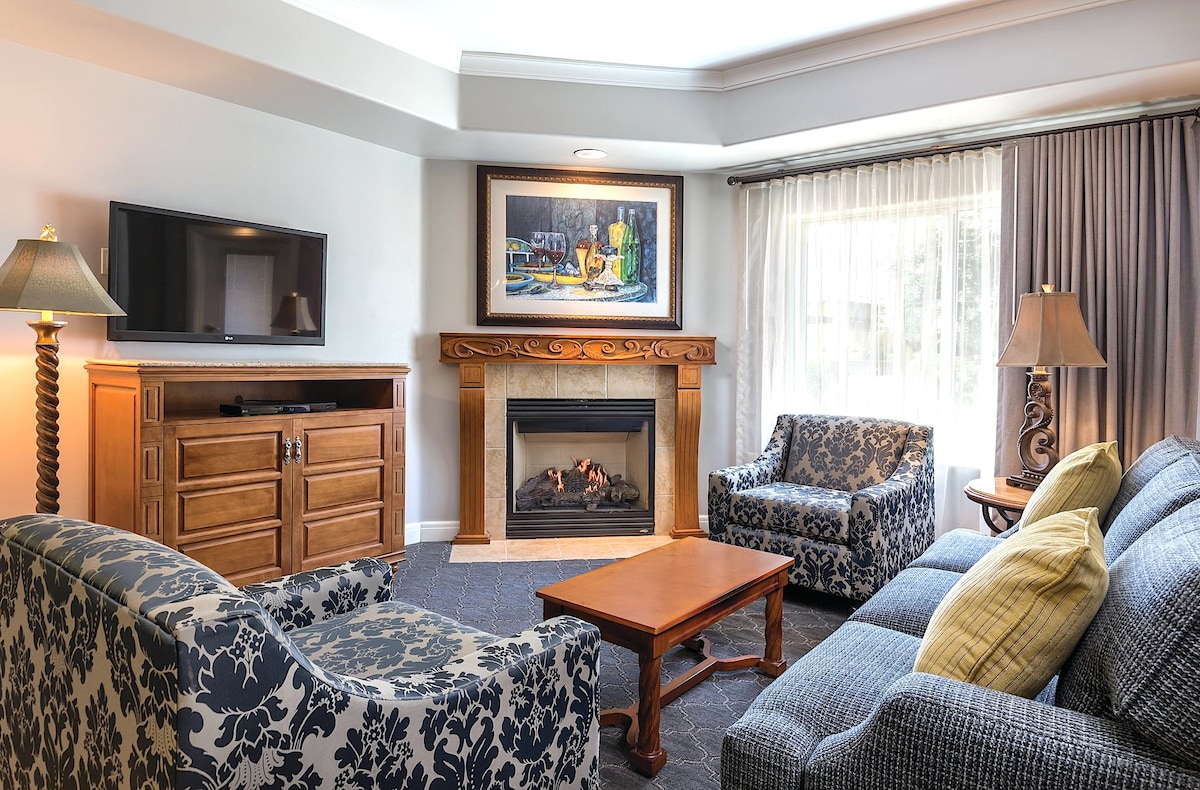 A posh one bedroom condo suite located in the luxurious Vino Bello Resort. Enjoy amenities such as the pool, hot tub, fitness center, sauna, and spa, as well as concierge service for daily wine excursions.
