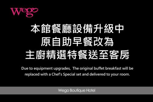 Wego Funtel - Dazhi Branch offers spacious themed rooms with a spa bath and complimentary WiFi access. It is just a 5-minute walk from Jiannan Road MRT Station Exit 3, and shopping options at Miramar Entertainment Park. The property is a 10-minute drive from Taipei Songshan Airport and within a 30-minute drive from Taipei Main Station. Taoyuan International Airport is a 40-minute drive away. The large air-conditioned rooms feature a signature mattress and a 42-inch flat-screen TV. A minibar and a hairdryer are included. Staff at Wego Funtel’s 24-hour front desk can assist with requests such as airport shuttle and complimentary private parking spaces. Due to equipment upgrades, the original buffet breakfast will be replaced with a chef's set and delivered to your room.