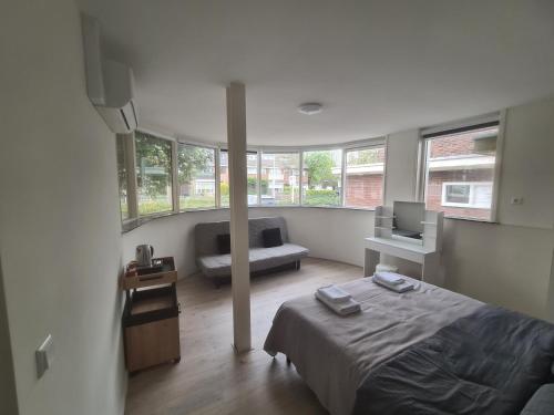 Recently renovated clean room with private attached bathroom and a workspace. Access to a fully equipped kitchen and a big shopping center on walking distance. Zaandam Station is on walking distance and from there it will take you 10 minutes to arrive at Amsterdam Central Station. Quiet area yet centrally located and nearby touristic hotspot Zaanse Schans as well.