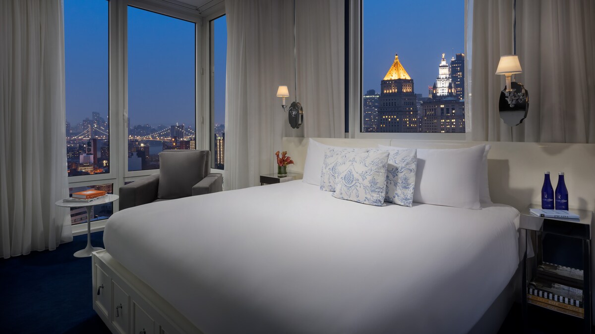 The Wall Street Hotel offers 180 accommodations with minibars and laptop-compatible safes. Beds feature down comforters and premium bedding. 55-inch Smart televisions come with Netflix. Bathrooms include bathrobes, slippers, designer toiletries, and complimentary toiletries.