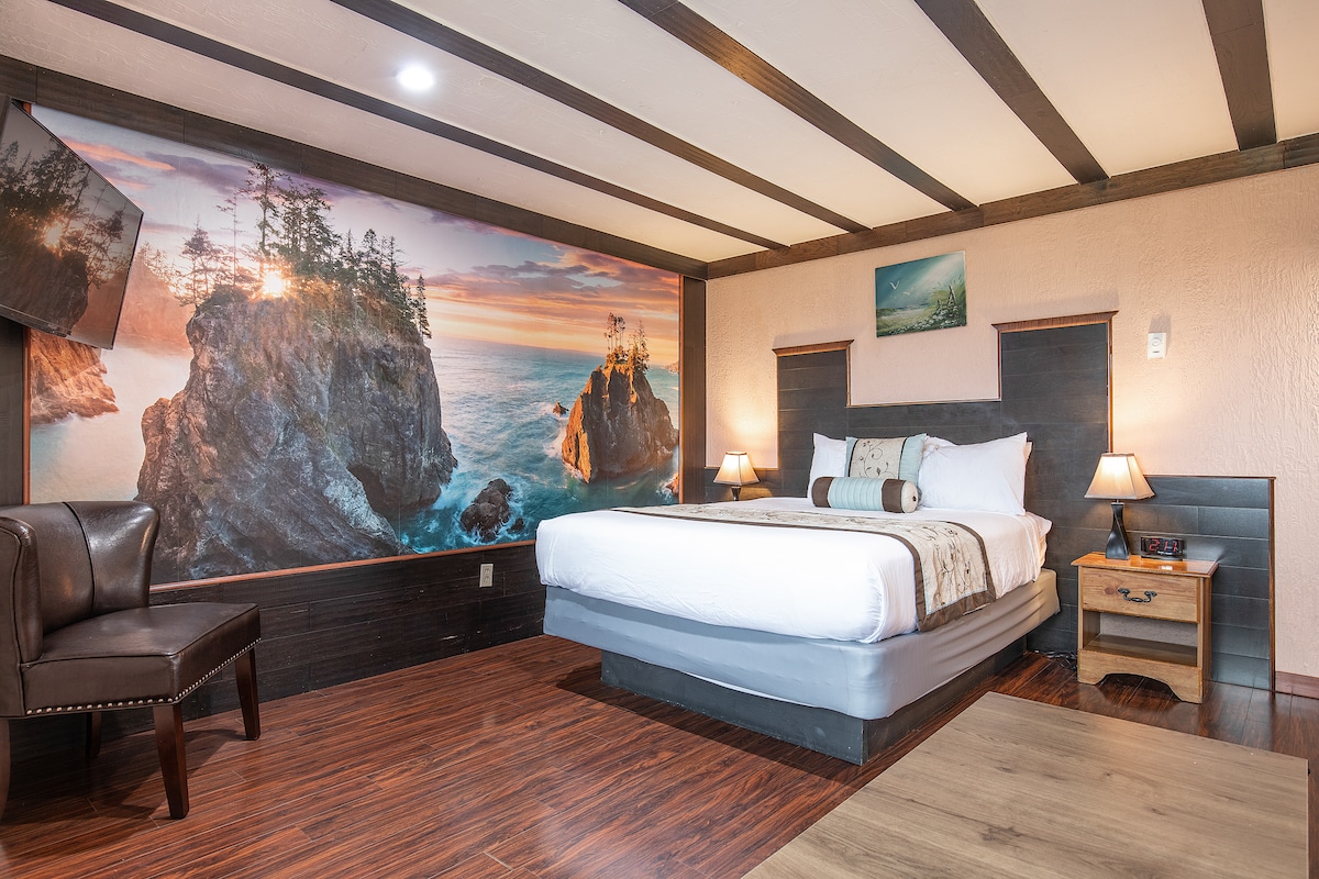 Located in Ocean Shores, 1.4 miles from Ocean Shores Beach, Wanderlust Inn provides accommodations with free WiFi and free private parking. The property is around 2.9 miles from Ocean City State Park, a 3-minute walk from Chance A La Mer State Park and 10 miles from Griffiths-Priday Ocean State Park. Certain rooms at the property include a balcony with a city view. Each room is equipped with a coffee machine and a private bathroom with a shower and free toiletries, while some rooms are equipped with a kitchen equipped with a fridge. At the inn, rooms include a flat-screen TV with cable channels.