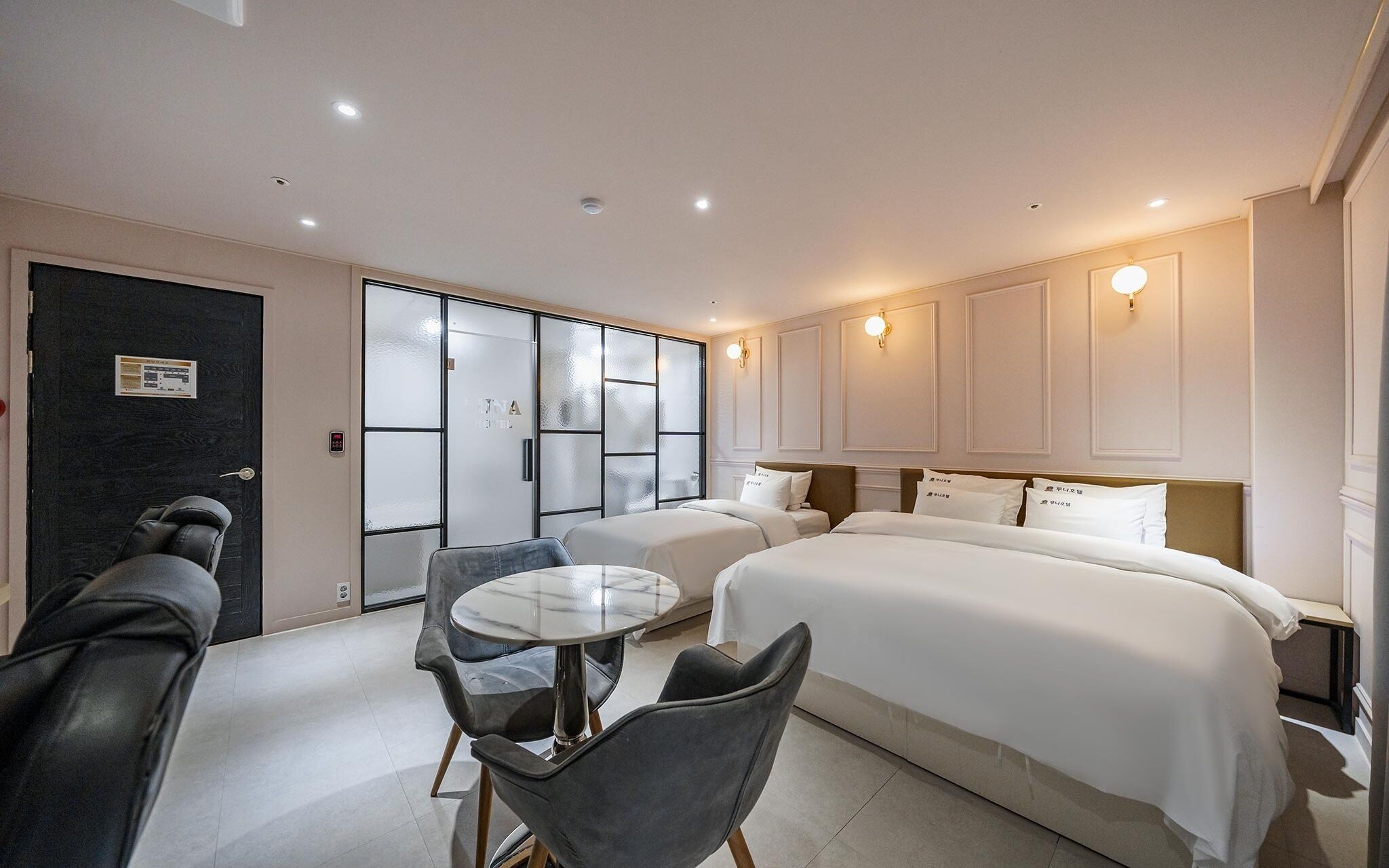 - "Wonderful room and stay. The room was large and comfortable and there were tons of amenities. Free coffee and toast in the lobby, plus other drinks like soda or tea. Only complaint was from my partner that said he could hear all the other rooms - I didn’t notice while sleeping. There was ear plugs available at the desk to combat the problem. I won’t hesitate to stay here again. " - "We stayed in the hotel 3 days over the two weeks we were in South Korea. It was a comfortable stay, easy check in and nice clean rooms. They have a nice snack area for guests including cold drinks, warm drinks and some grab and go snacks. It’s in a great location in Dongton, with bars and restaurants across the street. There is even a karaoke place on the 4th floor of this building. Would stay here again on future stays "