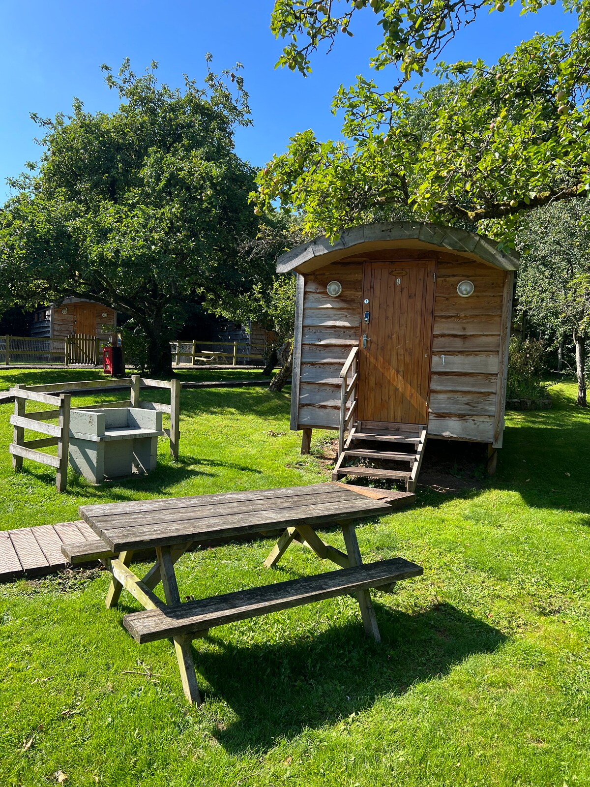 The shepherd huts are double braced huts with a bedroom, seperate bunk room for children, bath room and lounge area with a log burner. You have your own private garden terrace with firepit and chairs.