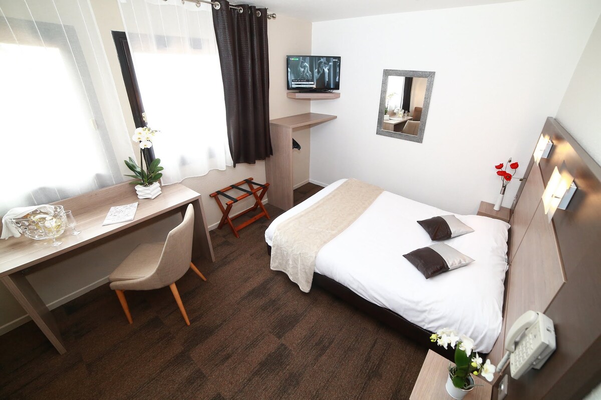 Brit Hotel Montpellier Parc Expo is located 6.2 mi from Montpellier's town center and 1.7 mi from Montpellier-Méditerranée Airport. It offers free WiFi and free on-site parking. The air-conditioned guest rooms feature a flat-screen TV, telephone, heating and a private bathroom with a bath. 3 rooms are specially adapted for guests with limited mobility. A buffet breakfast is served every morning at the hotel and children aged 13 years or younger benefit from free breakfast onsite. Guests can enjoy a drink in the bar. Brit Hotel Montpellier Parc Expo also provides 24-hour access and a night porter. Carnon port and its beaches are 3.7 mi away and Montpellier Exhibition Center is just 984 feet away.