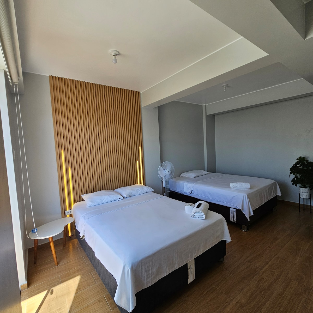 Located in the heart of Piura, just 3 blocks from the Main Square and 1.9 mi from the Concha Iberico International Airport. Hoteles Paraiso Piura is your ideal choice for business or leisure travel. Our 3-star hotel offers a modern and comfortable experience, with a strategic location that allows you to explore the city with ease. Enjoy our spacious rooms equipped with unlimited WiFi, air conditioning, 49” Smart TV with Direct TV, private bathroom, safe, desk, dressing table and closet, designed to offer you everything you need for a restful rest. At the hotel, you will receive personalized attention 24 hours a day at our reception, and you can enjoy a delicious breakfast buffet. In addition, we have private parking and a restaurant with a la carte dishes, perfect to enjoy a gastronomic experience without leaving the hotel.