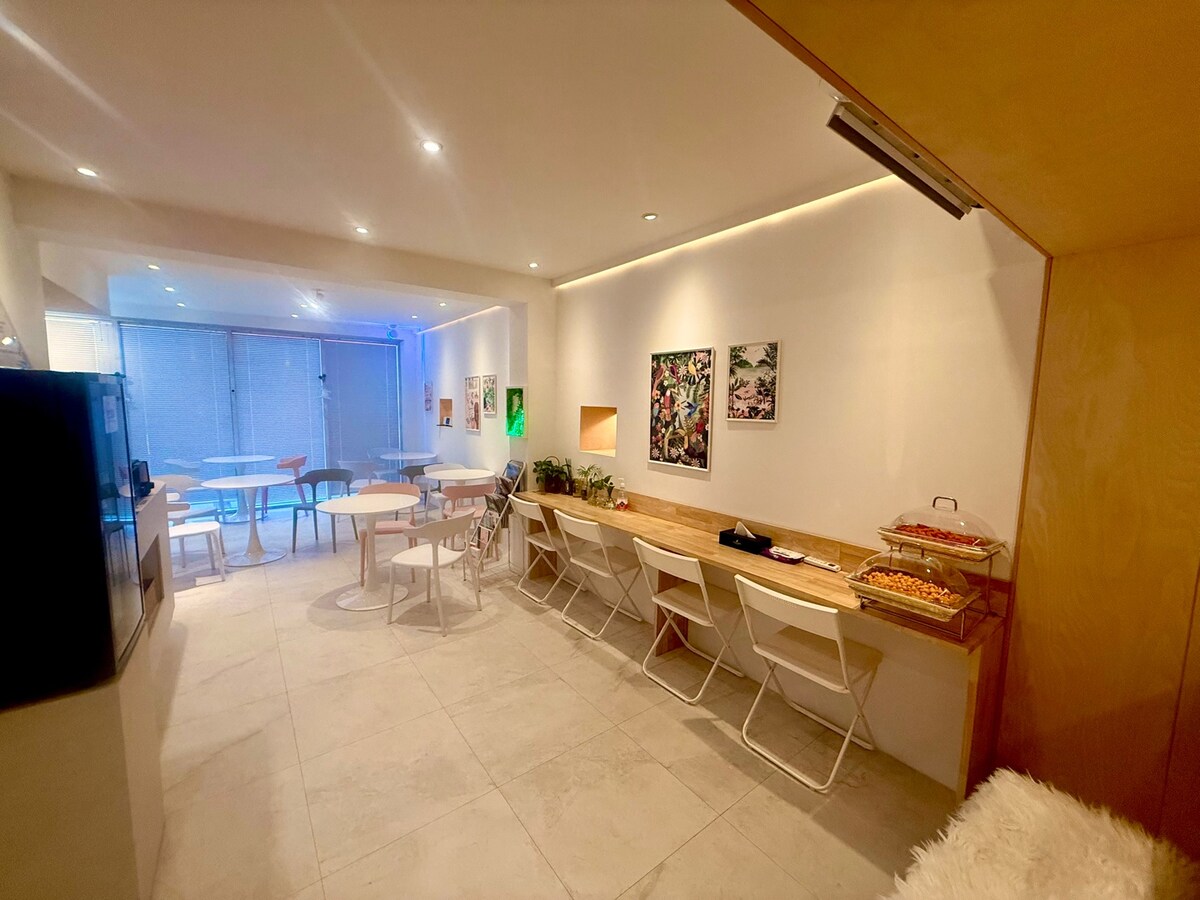 The shared cafe on the first floor is free of charge.