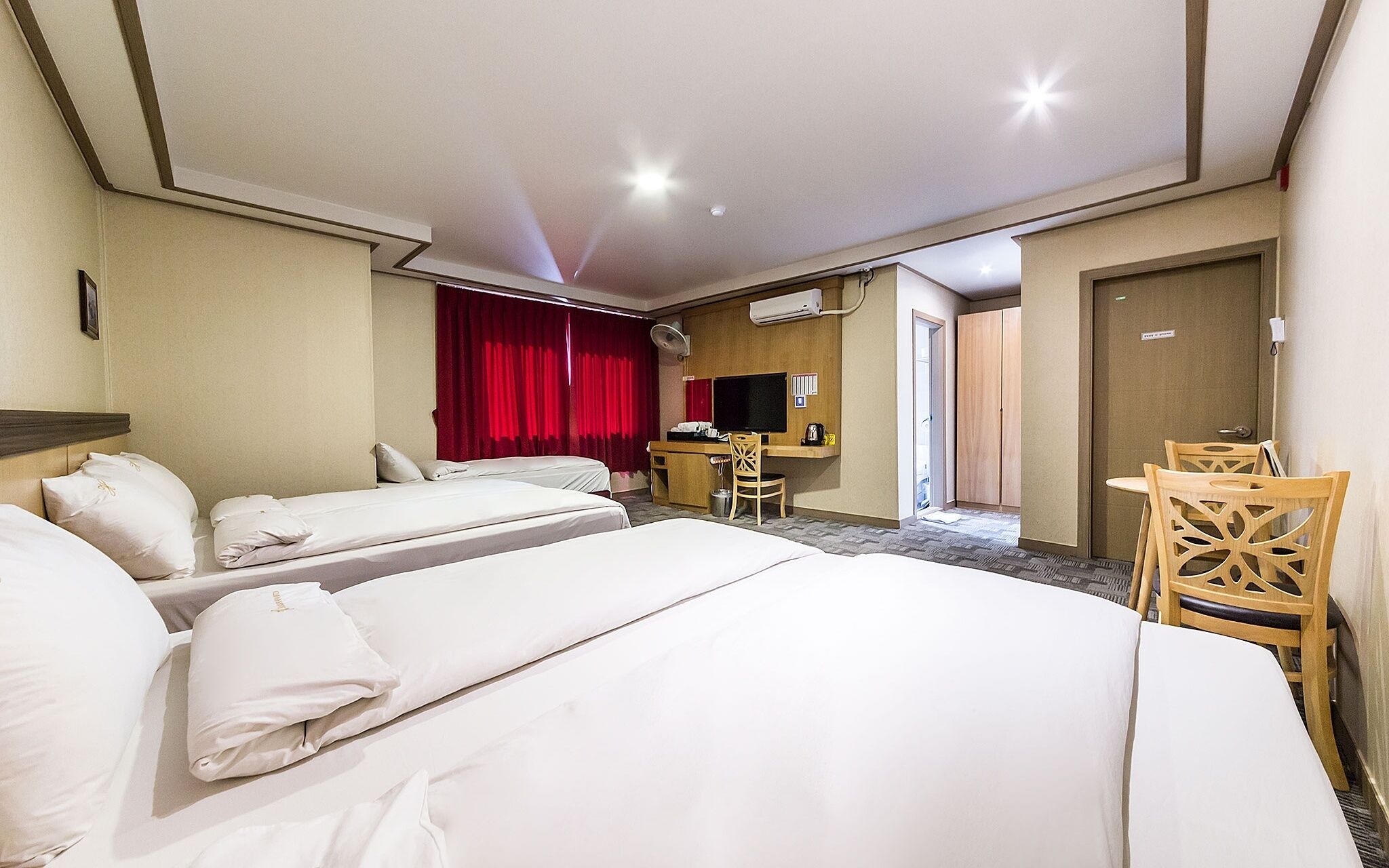 Benikea The Bliss Hotel offers 88 air-conditioned accommodations with complimentary bottled water and slippers. 62-inch flat-screen televisions come with cable channels. Bathrooms include bathtubs or showers, complimentary toiletries, hair dryers, and toothbrushes and toothpaste.