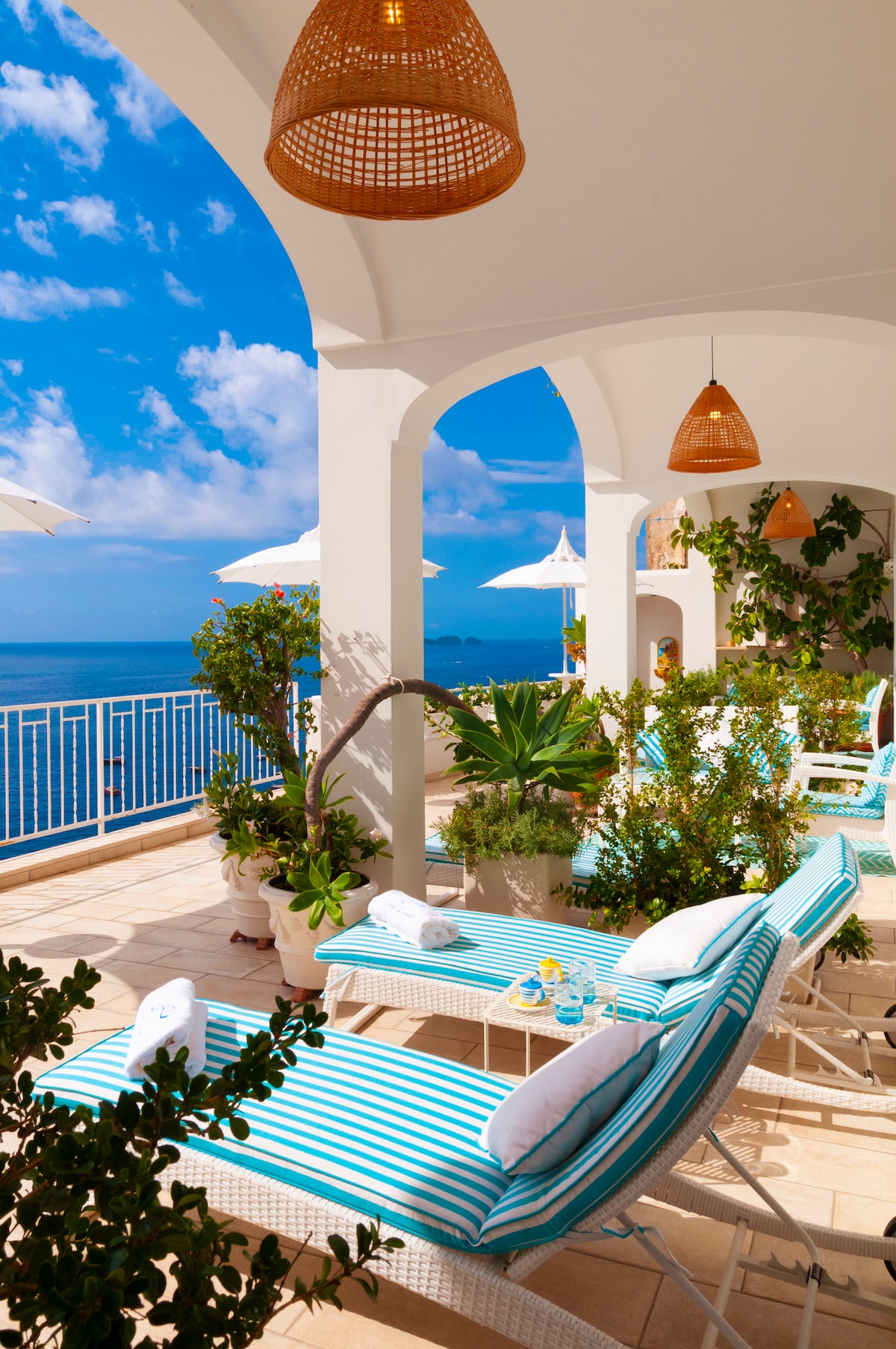 The Royal Hotel is defined as "the most beautiful terrace in Positano", surrounded by greenery and gardens.