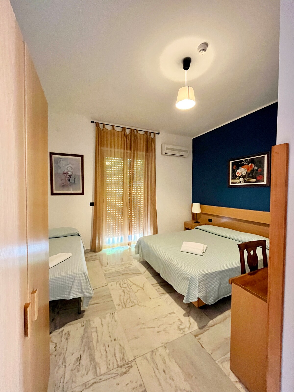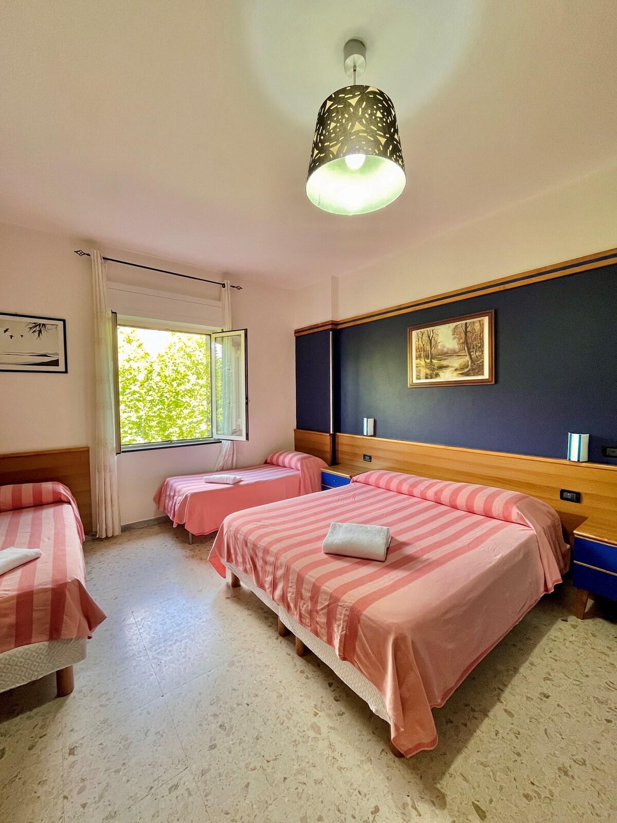 Our cozy 3-star hotel offers triple rooms with a balcony, spacious and bright, equipped with free Wi-Fi, air conditioning, and a private bathroom. The rooms with a balcony offer a beautiful view of the sea or the mountains. Guests can enjoy free parking and enjoy breakfast included every morning. We accept pets, at a small additional cost (1 per room).