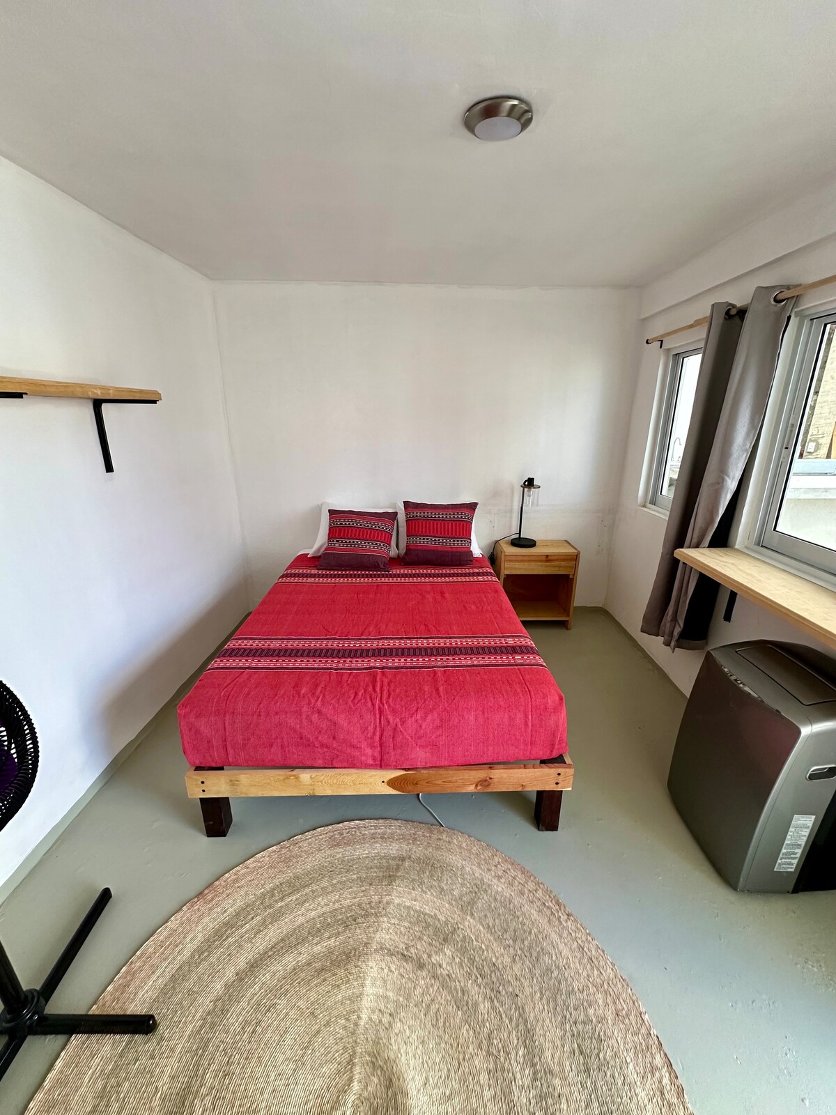 This room features amenities such as air conditioning, high-speed Starlink Wi-Fi, a private bathroom, kitchen, and common areas.