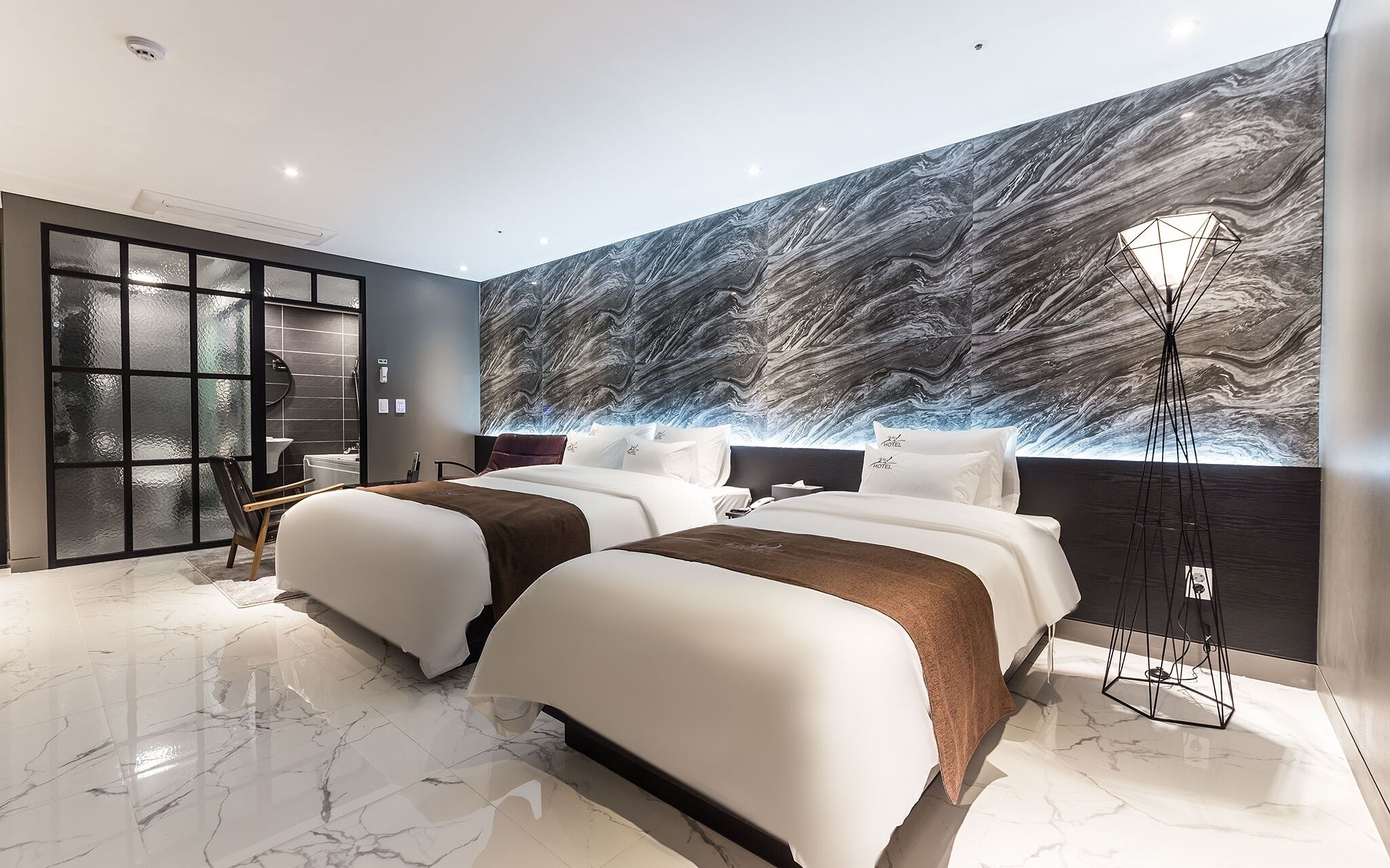 Mariposa Hotel Songtan offers 47 accommodations with complimentary bottled water and bathrobes. 65-inch Smart televisions come with premium digital channels, pay movies, and Netflix.