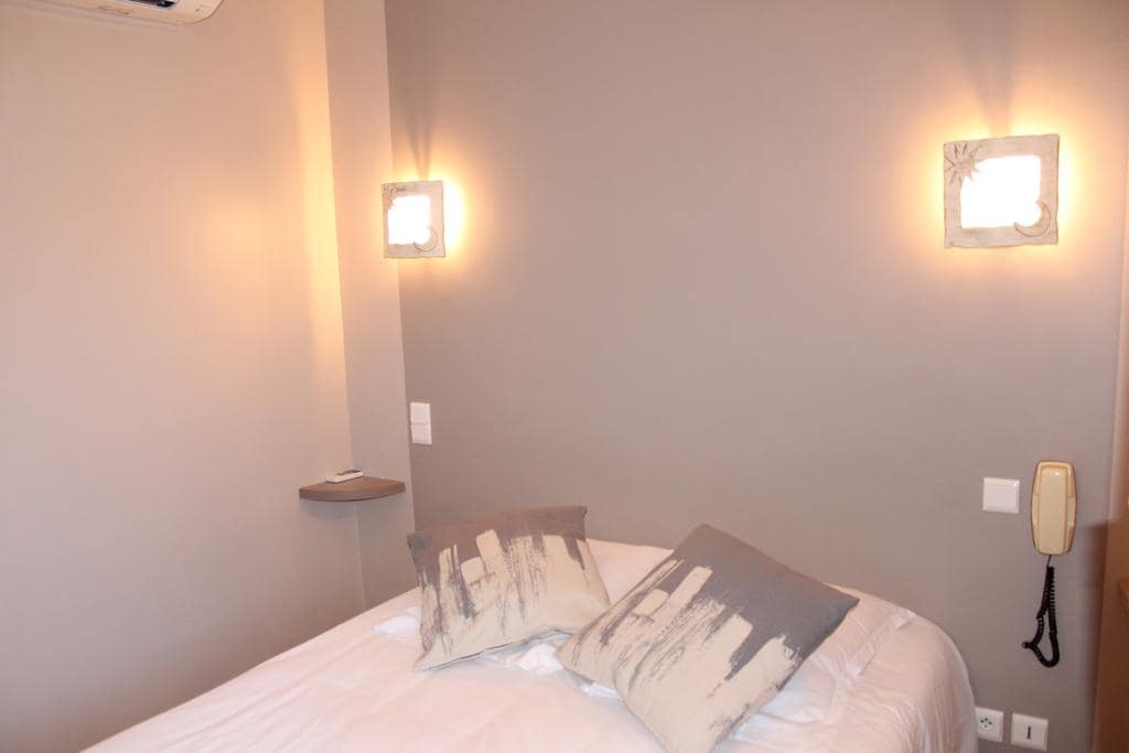 The upper double rooms are located on the first and second floor. It is composed of a 140 cm bed, a private bathroom with separate toilet. They are more spacious than the standards and can accommodate a crib. The window overlooks a dead end.