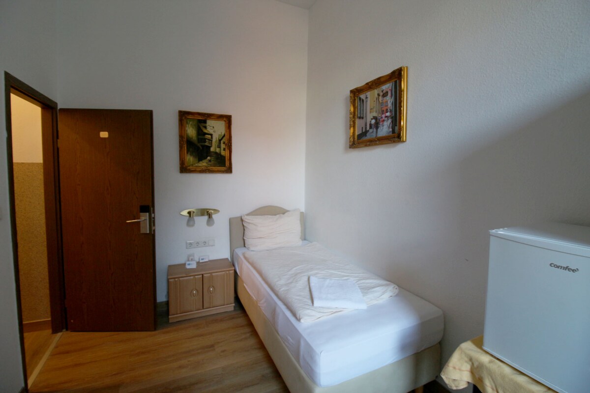 The room is located in Cologne's old town north, 350 meters from the main train station, in a quiet side street. This is a room with a bathroom. The bathroom includes a shower, a toilet and a laundry room. The room is furnished with single bed, wardrobe and desk with chair.