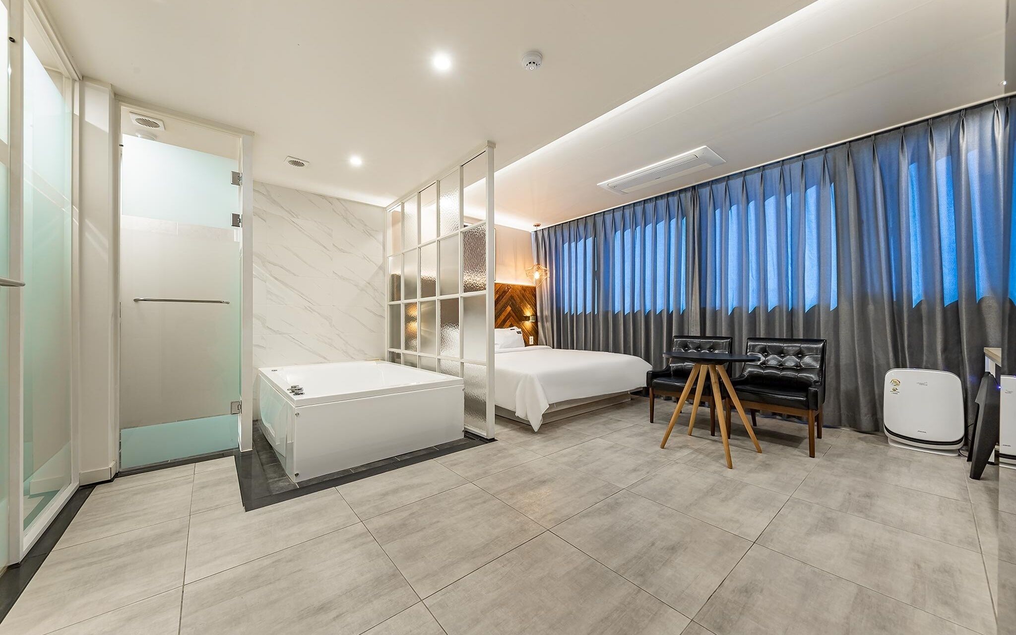 - "They checked me in early, which was great because I was only in town for one day and it gave me a chance to drop my bags off before going out to explore. Good experience" - "I got an upgrade for unknown reasons and the big room is very nice and comes with a jacuzzi!" - "Kind staff " - "Stayed for one night as we were attending Jinju festival. Everything was good and convenient as location was close to the festival site. " - "Somewhat odd type of hotelroom in our view. No doubt geared for more "romantic stays". We were a little concerned if this was the primary purpose of the hotel, but we saw many other couples in the hotel. In spite of immediate appearances and location, the room was very comfortable and clean. We had the window open all night and the street was very quiet. "