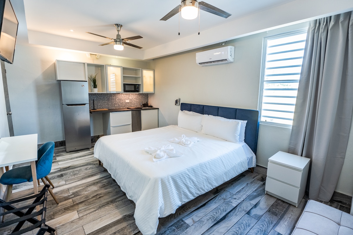 Casa Ciana is a newly remodeled luxury boutique hotel in Miramar's Art & Music district. Just 5 minutes from the Hotel Strip, casinos, and beaches, it offers artist-inspired rooms featuring icons like Marc Anthony, Ricky Martin, and Bad Bunny. The Cozy Ground-Floor Retreat Room is perfect for couples or small families, featuring free Wi-Fi, air conditioning, flat-screen TV with Hulu & Netflix & ambiance. Explore San Juan’s culture, beaches, and historic landmarks from this peaceful retreat.