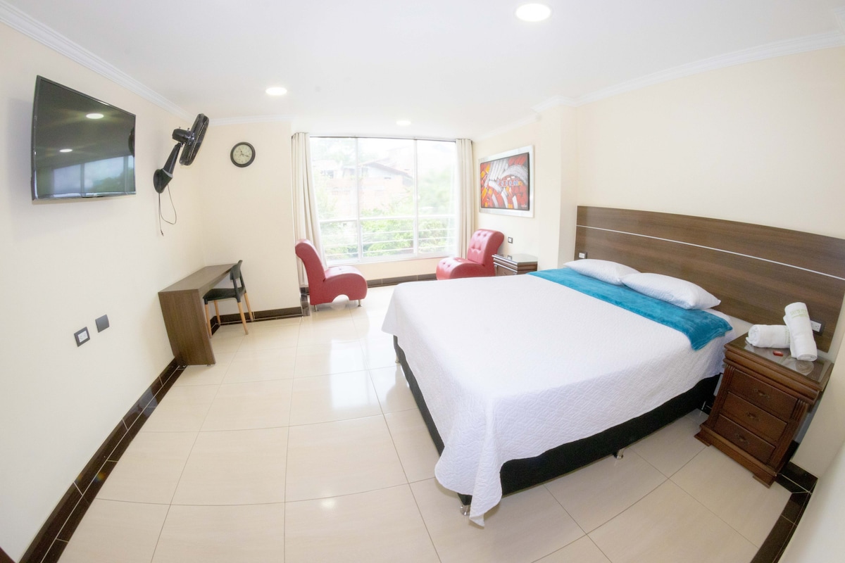 The hotel is located in Santa Fe de Antioquia on the main avenue. Around it you will find restaurants with a wide variety of cuisine, bars, nightclubs, the main park that is two blocks from the accommodation, the bus transport terminal.