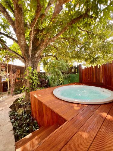 Located in Alter do Chao, a 19-minute walk from Alter do Chao Beach, CASA DA ARVORE, sonho na Amazônia, 2min a pé da praia has accommodations with a garden, free private parking, a terrace and barbecue facilities. The property is around 22 miles from Santarem's Harbor, 23 miles from Nossa Senhora da Conceição Diocesan Cathedral and 23 miles from João Fona's Museum. The inn has family rooms. At the inn, rooms are equipped with a deskand a patio with a garden view. Featuring a private bathroom with a shower and a hairdryer, rooms at CASA DA ARVORE, sonho na Amazônia, 2min a pé da praia also feature free WiFi, while some rooms contain a balcony. The rooms will provide guests with a fridge. Activities such as hiking, diving, fishing can be enjoyed in the surrounding areas, and guests can relax along the beachfront. Maestro Wilson Fonseca International Airport is 21 miles from the property, and the property offers a paid airport shuttle service.