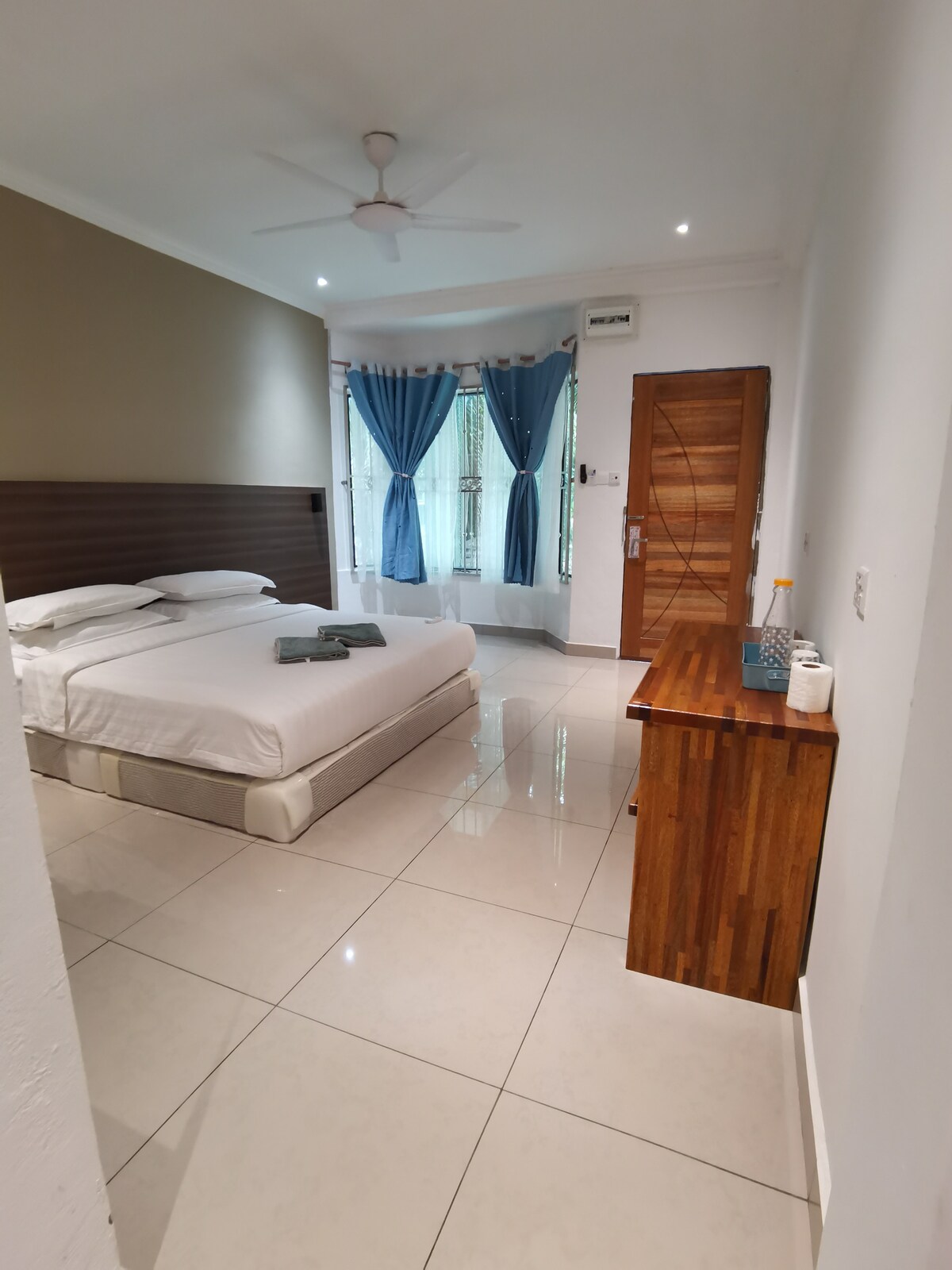 Quiet, elegant, comfortable, good soundproofing, green and leafy surroundings of a large palm garden, very private, no need to worry about sharing space, good drainage in the bathroom.The room is 33 square meters (oversized) with a private toilet and balcony. It has an exclusive 8 single-storey hotel room, with 1 king (king) double bed. You can dry your clothes on the balcony. You can use the shared kitchen to prepare food. You can enjoy a rural stay at the same time, and it is only 2.4 kilometers from the city/pier. You can walk to supermarkets, restaurants, convenience stores, etc.The operation of the homestay has also survived the pandemic for many years, and has also received good reviews from multiple platforms. 1."Semporna Town is the best place to stay, not one of them.Located on the edge of town "2. "Sleeping is also very comfortable, relatively quiet, away from the noise!Recommended! It's easy to dry clothes and come back to do laundry at sea "3."Very nice resort hotel, we are very satisfied with the group of 12 people, large and small.Although not in town, the surroundings are very quiet without the noise of the town, the room is very clean, and the bed is large enough. In short, it is very satisfying and worth recommending "4."The room is big, the bed is also big, it is very clean, take off your shoes in the room, so the hygiene is still very good". Grab, Maxim, or takeaway service can be downloaded to the town or pier or meals, and you can tell the front desk service if you encounter any difficulties.We continue to provide the best service for travelers and look forward to booking for everyone.