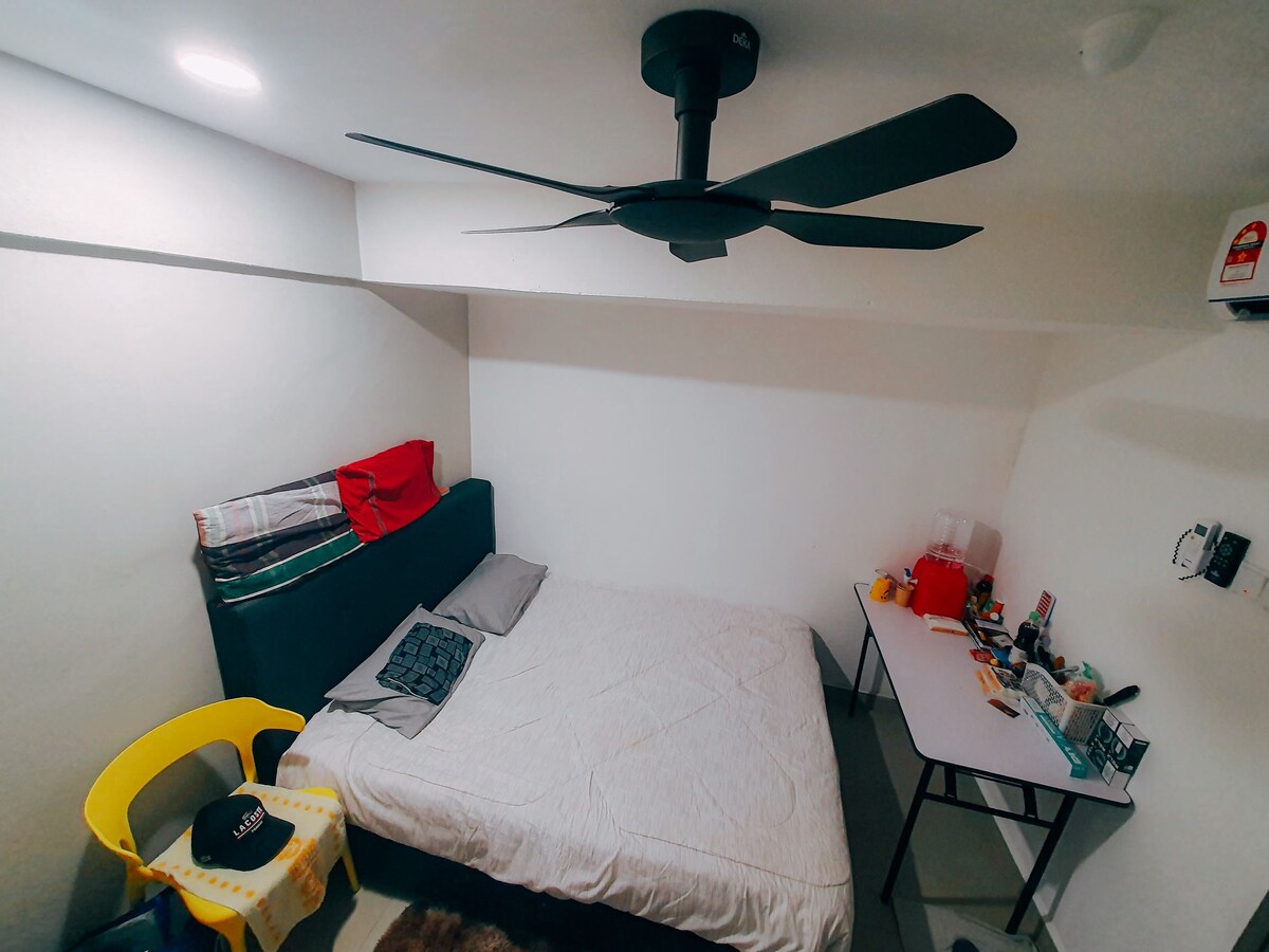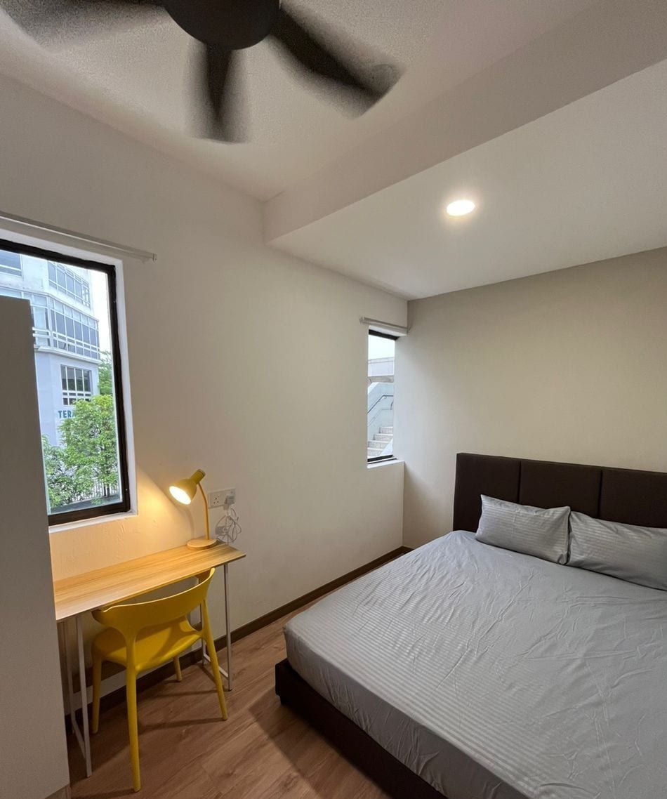 Comfort meets convenience in my hosting room. Equipped with a cozy bubble bed, laptop table, chair, and additional furniture, it ensures a pleasant stay. The attached bathroom offers hot water, while shared amenities include a washing machine, dryer, and communal kitchen. Accessible with an access card, the room boasts a unique entrance path through two doors. A welcoming lobby with a dining table sets the tone for a delightful experience.