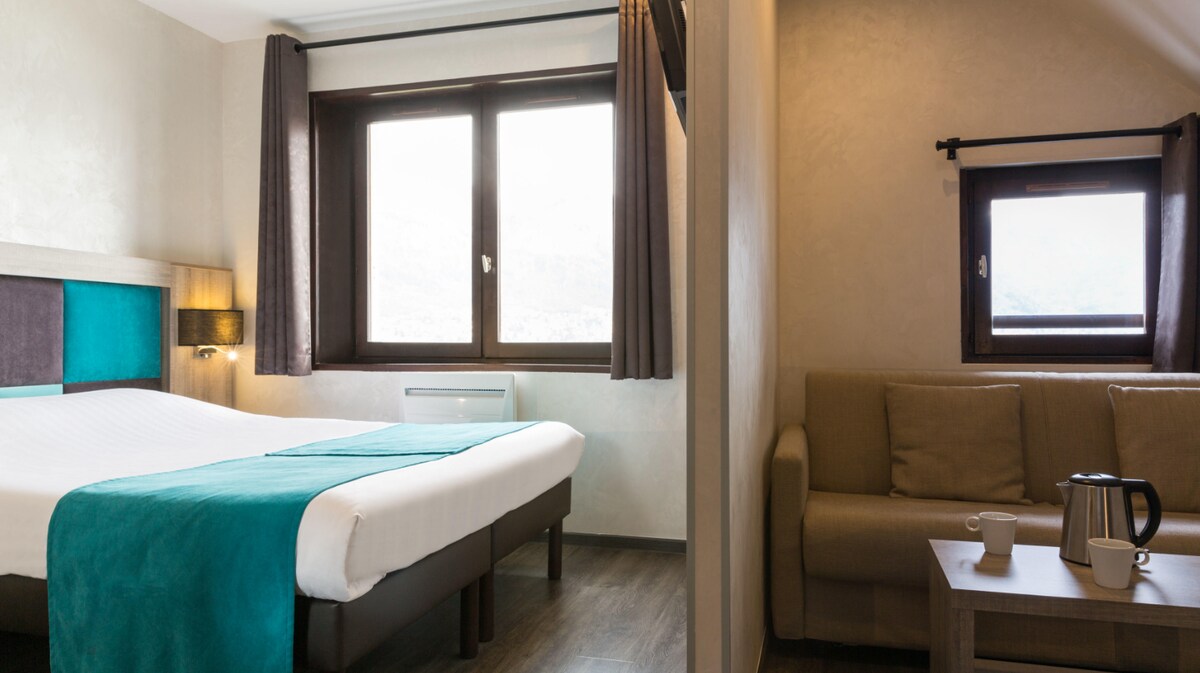 Fully renovated rooms with an area of 19 to 25m², overlooking the Semnoz forest and the hotel car park as well as the road. Very good soundproofing, bathroom, air conditioning, flat screen and international channels, 1 double bed or 2 twin beds or a sofa bed 2 places or 2 bunk beds according to availability.