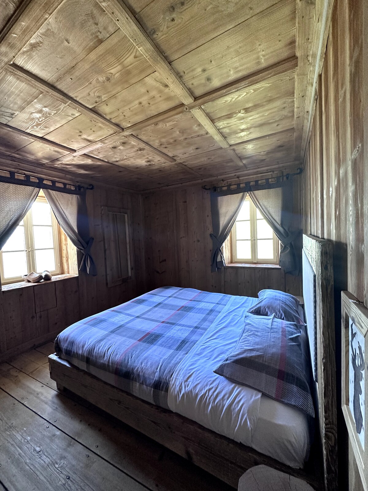 After a day of outdoor adventures, the well-deserved relaxation awaits you in our spacious and bright double room, consisting of two single beds including linens (sheets and blankets) and a beautiful view of the Royal Alps.