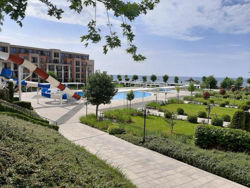 Prestige Fort Aparthotel - Private apartment-BSR offers accommodations in Sveti Vlas, a 4-minute walk from Sveti Vlas Beach - West 2 and 2.5 miles from Action AquaPark. This beachfront property offers access to a balcony. The accommodation provides free Wifi, as well as a terrace and a family-friendly restaurant. The air-conditioned apartment consists of 1 bedroom, a living room, a fully equipped kitchen with a dishwasher and a kettle, and 1 bathroom with a shower and a hair dryer. Towels and bed linen are provided in the apartment. The accommodation is non-smoking. There is an on-site bar. For guests with children, the apartment features a children's playground. Guests can swim in the outdoor swimming pool, relax in the garden, or go cycling or hiking. Old Nesebar is 5.9 miles from Prestige Fort Aparthotel - Private apartment-BSR, while Museum of Aviation is 19 miles away. Burgas Airport is 21 miles from the property.