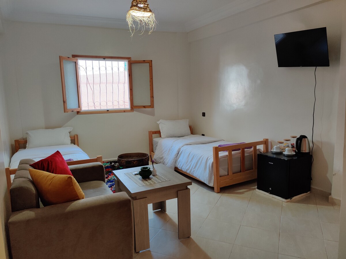 Our shared dorm is ideal for volunteers working with us and renters seeking an affordable stay. With space for up to 5 people, it offers a cozy and vibrant environment inspired by Taghazout’s surf and sea vibes.