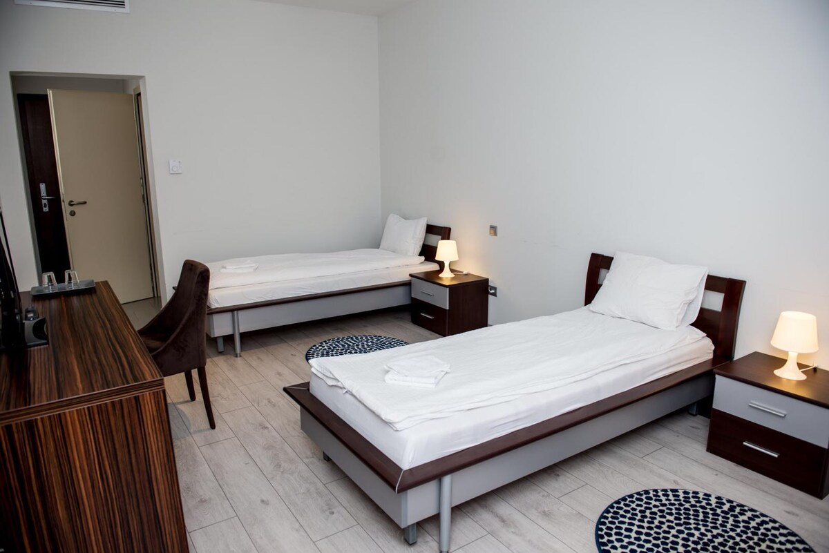 Business Hotel Conference Center & Spa, fully renovated in 2024, is located next to Mureș Shopping City Mall, the biggest shopping mall in the area, and a 5-minute drive from the center of Târgu Mureș. The large spa area includes an indoor pool. Free WiFi is available. The air-conditioned rooms at the Business Hotel feature a flat-screen cable TV, a mini-bar, a work desk, and a bathroom. Spa facilities include a sauna, a steam bath, a Turkish bath, an aroma sauna, a tepidarium, a hot tub and massage showers. There is also a relaxation area, a fitness room, and massage beds. Authentic Romanian, Hungarian and Italian cuisine is available. The rooftop bar offers panoramic views of the surrounding forest. Guests can benefit from a 24-hour reception. Free private parking is available on site. The train station can be reached in a 10-minute drive, and Targu Mures Airport is a 20-minute drive away.