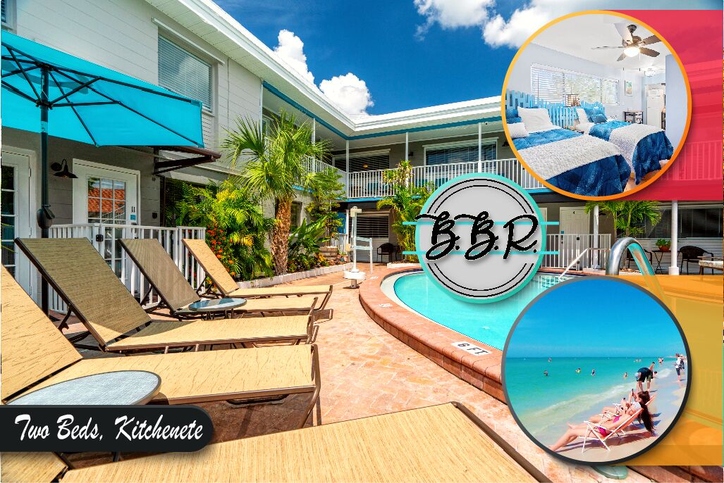 Soak up the sun and unwind at Las Olas of Treasure Island, a boutique coastal escape just across the street from the sparkling water of Treasure Island Beach. A Double Queen Suite within a gem of 11 clean & comfortable guest rooms. Designed for beach lovers, it sleeps 4 with Two (2) comfy Queen beds & all the essentials and modern amenities you need delivered with beachside charm!
