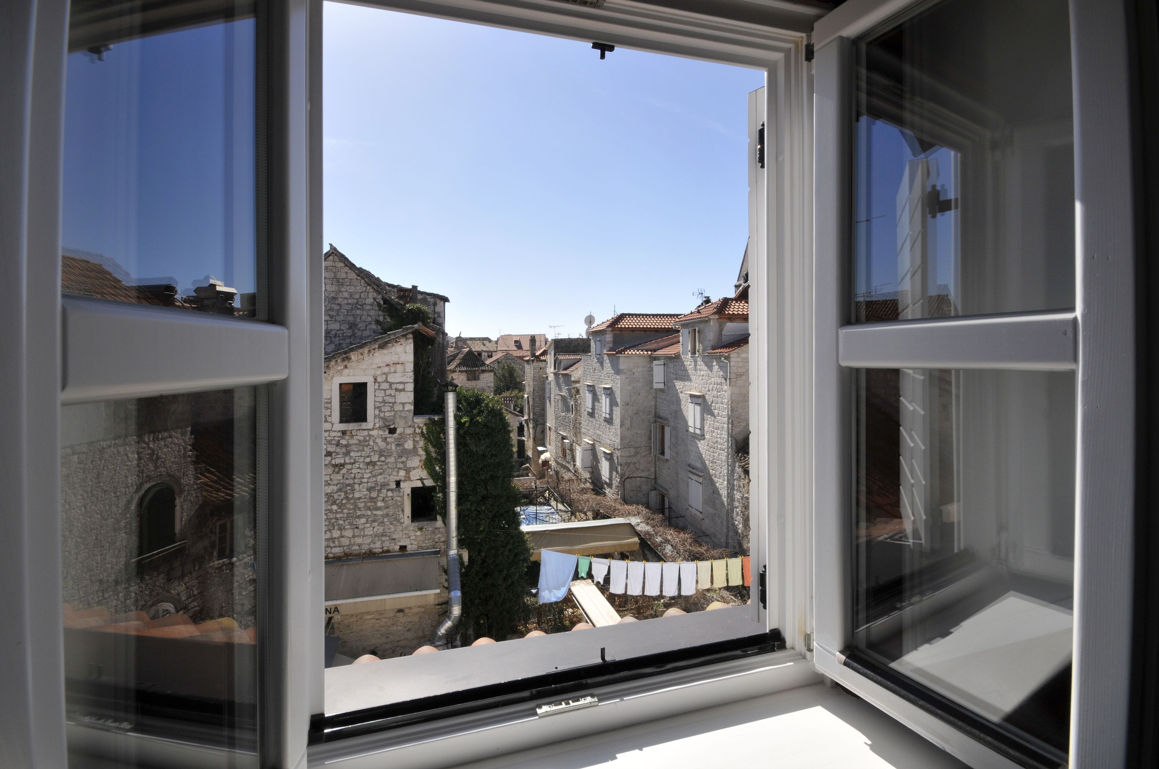Double Room in newly renovated property, a stone house located just 30 meters from beautiful Trogir central square. It is a cozy modern room with a private bathroom, equiped with all amenities you might need. and House itself is one of the oldest houses in Trogir - built in the 12th century! Room also has a unique view over the rooftoops of old Trogir houses.