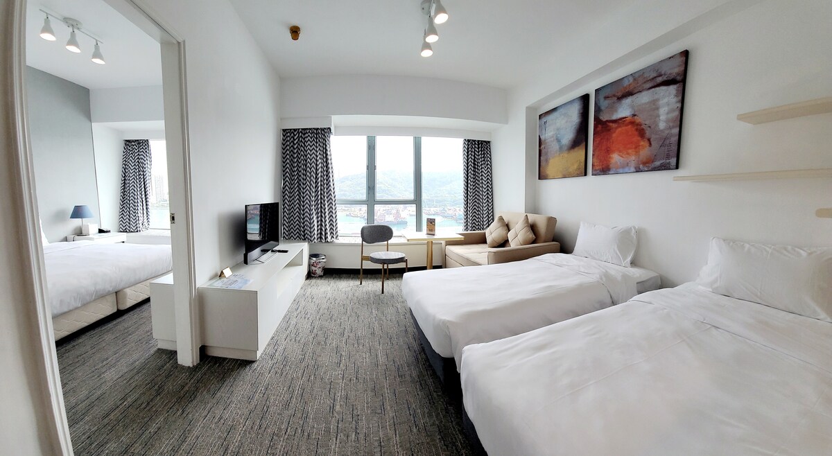 My room is located in Tsuen Wan, right by the waterfront. It's just a 3-minute drive to Tsuen Wan Plaza and an 11-minute drive to Ladies' Market. Harbour City is 8.2 miles (13.2 kilometers) away, and the Hong Kong-Macau Ferry Terminal is 10 miles (16.1 kilometers) away. From a bus stop near my place (A38), you can take a public bus to the nearby Tsing Yi Airport Express Station and then transfer to the Disney Bus R8, which takes you directly to Hong Kong Disneyland in just 10 minutes.