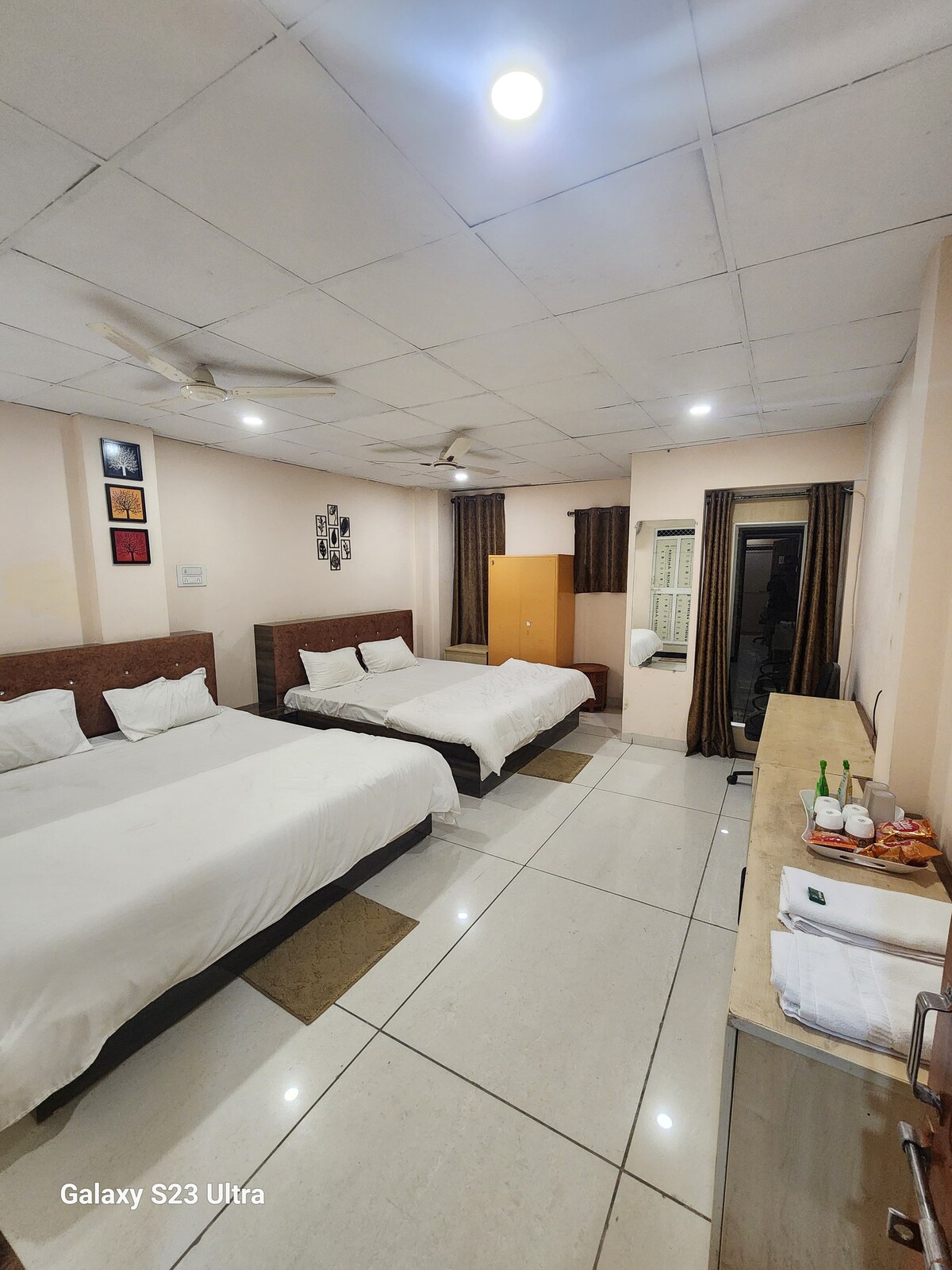Enjoy a comfortable stay in this cozy hotel room located on first floor ,offering 2 king size bed , just 1.5 km from the famous Mahakaal Jyotirlinga and Ujjain Railway Station