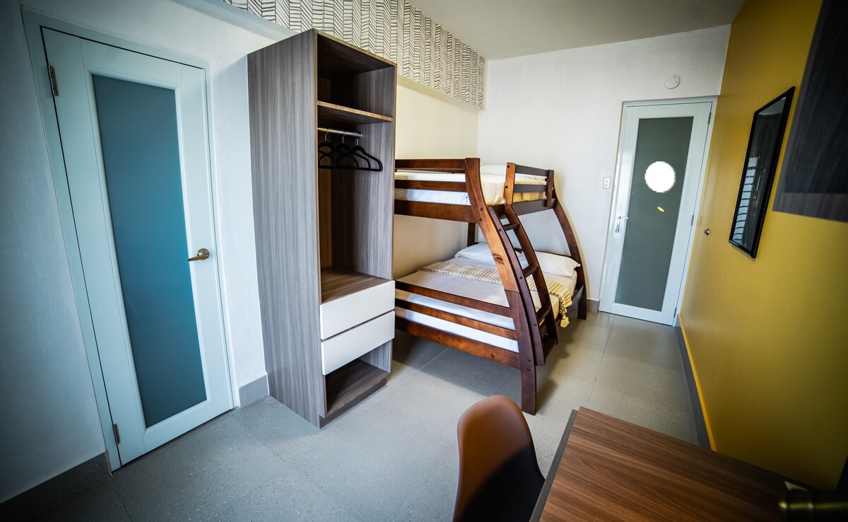 Whether you're here for a weekend getaway or an extended stay, Melao Lodge has everything you need! Here on vacation, you won't be disappointed; we have solar panels, an automatic electricity generator, and a water tank. We are located in the heart of the Vega Baja historic district, Melao will charm you with its vibrant colors and elegant spaces. Your private bedroom will become your home away from home. Rest comfortably and breathe fresh air in your very own private balcony, and enjoy a hot shower in your private bathroom after a long day at the beach! If you're visiting the area for business, high-speed wifi and a comfortable workstation are waiting for you in your room. Our guests fall in love with our elegant shared spaces. Get lost in a book, watch your favorite series on Netflix (or maybe your favorite telenovela on local TV!), or play one of the available board games in one of our three living room areas. Cook dinner in the kitchen or order carryout from one of the delicious local food spots! Wake up drinking a cup of Puerto Rican coffee, one of the best-tasting in the world, while listening to the sounds of "el pueblo" (the town) on our larger balcony. Relax in our new ROOF TOP with and POOL, enjoy the space with family and frends. Regardless of your reasons for visiting Puerto Rico, we know that you will fall in love with our hidden gem. Please contact us if you have any additional questions and we will be happy to chat