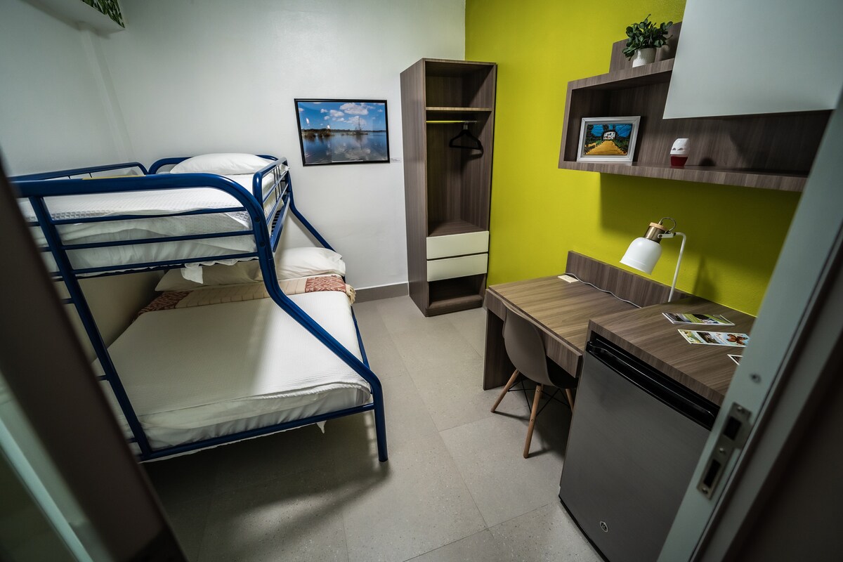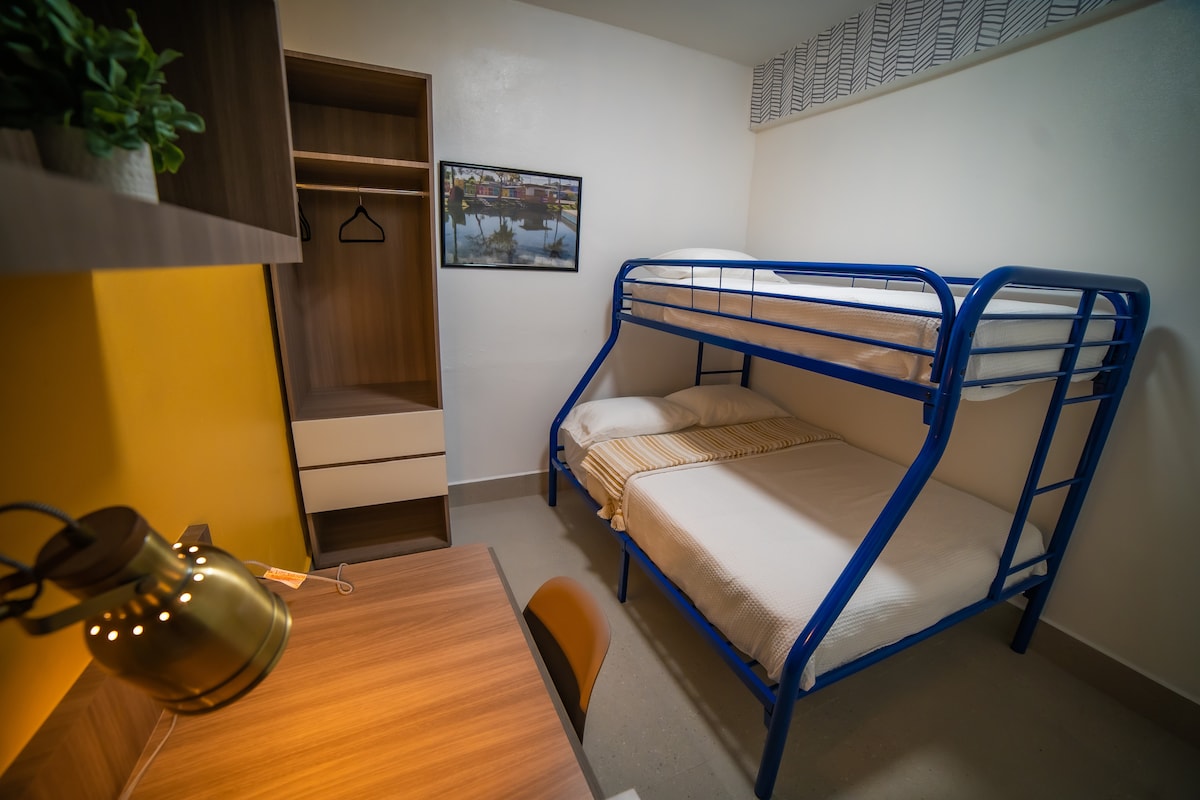 Melao Lodge has everything you need! Located in the heart of the Vega Baja historic district, Melao will charm you with its vibrant colors and elegant spaces. Your private bedroom will become your home away from home. Enjoy a hot shower in your private bathroom, next to the room, after a long day at the beach! If you're visiting the area for business, high-speed wifi and a comfortable workstation are waiting for you in your room. Our guests fall in love with our elegant shared spaces. Get lost in a book, watch your favorite series on Netflix (or maybe your favorite telenovela on local TV!), or play one of the available board games in one of our three living room areas. Cook dinner in the kitchen or order carryout from one of the delicious local food spots! Wake up drinking a cup of Puerto Rican coffee, one of the best-tasting in the world, while listening to the sounds of "el pueblo" (the town) on our larger balcony. Relax in our ROOFTOP and new POOL w/heater. Regardless of your reasons for visiting Puerto Rico, we know that you will fall in love with our hidden gem. Please contact us if you have any additional questions and we will be happy to chat!
