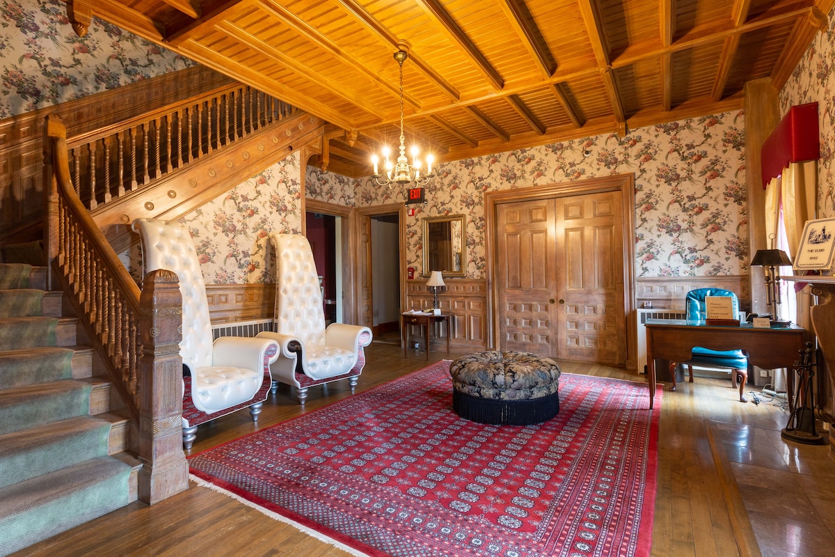 The Elms is a historic Queen Anne Victorian mansion built in 1882 to serve as luxury accommodations for international executives and dignitaries visiting the local paper mill. Overlooking the Presumpscot River across the street from the old mill, the building retains many of its original architectural details, featuring lofty ceilings, grand staircases, exquisite woodwork, and antique furniture.