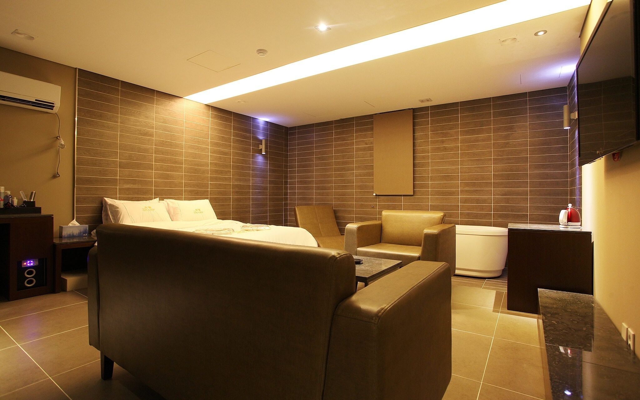 - "When I got there I figured that it is basically a love hotel. I went there with a family so I was a little concerned. However, when I got in the room, it was surprisingly large and luxurious for the price. There was a massage chair and the room was very spacious. Big TV, PC, internet, etc." - "We stayed for 5 nights and had a pleasant stay. It’s a modern motel situated on 8th-12th floor of a big building (Starbucks on 1st floor). Room is big, comfortable and has a nice design. Roomy bathroom with excellent rain shower. If you have noisy neighbors, you will hear every sound. It happened only 1 of 5 nights. Staff speaks no English. Motel is a few minutes walk from Yuseong Spa Station and bus stops to Gyeryongsan NP (bus 107) and Daejeon Terminal Complex (bus 102) and 5 minutes walk to Yuseong Intercity Bus Terminal (handy for visits to Buyeo, 3 direct buses a day). Walking distance to ‘foot bath experience’ and area with many restaurants. We highly recommend a visit to a jjimjilbang and sauna too. We went to Bulgama, next to Stendhal Hotel. Recommended."