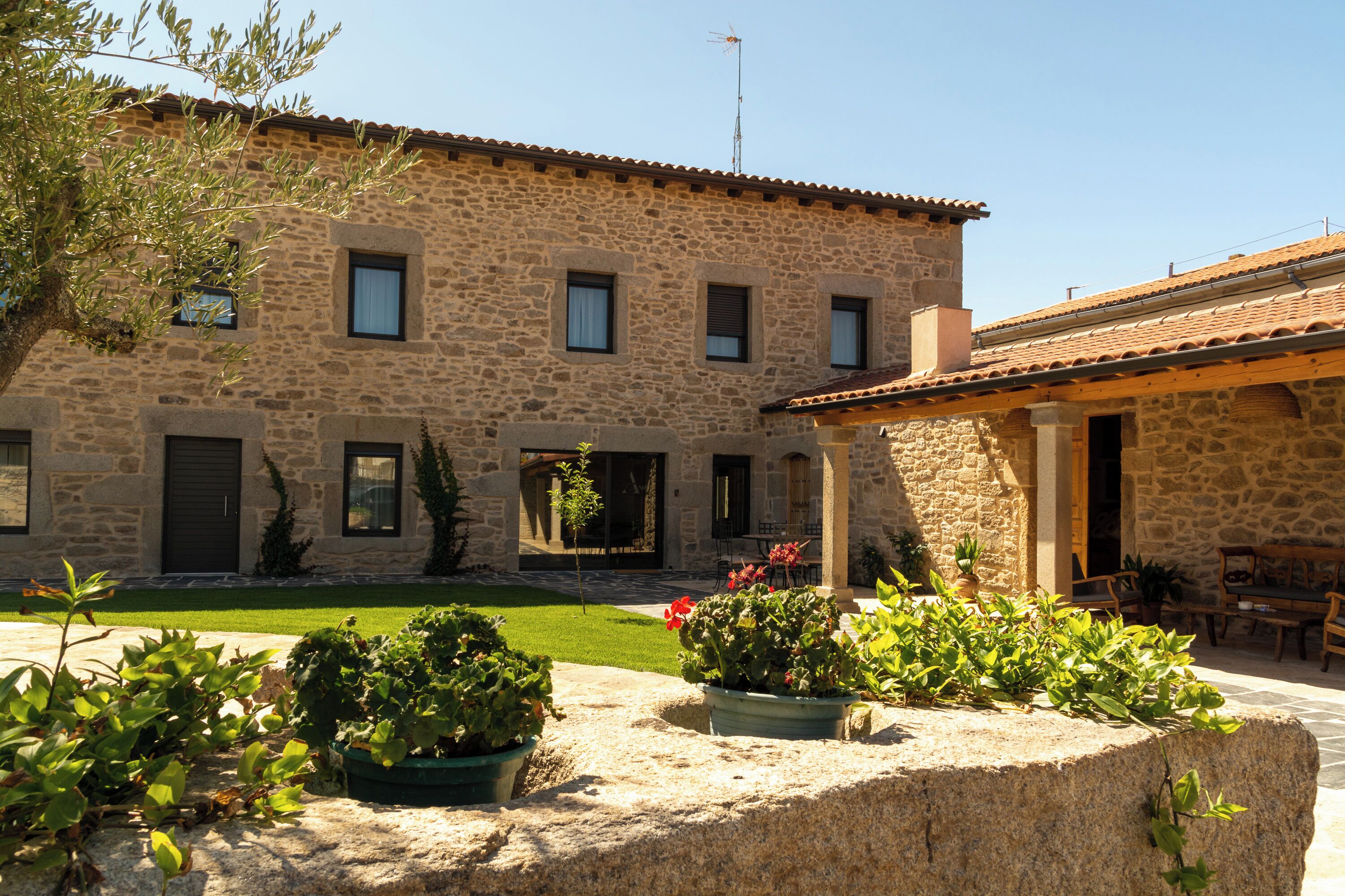 Antiguo Casal Real de Fernando II, stone and wooden building. With a landscaped patio that belongs to the Restaurant and Bar, where you can taste our gastronomy or cocktails.