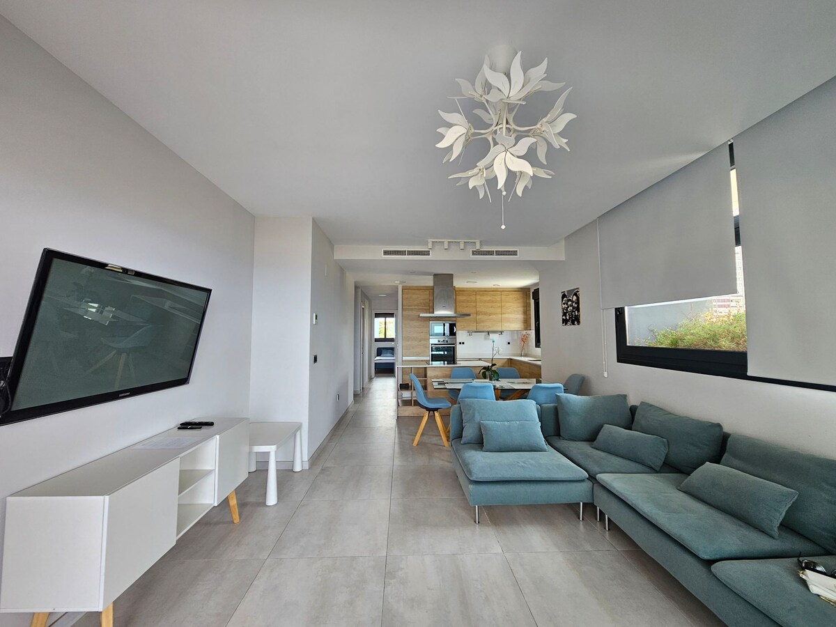 The heart of this apartment is, without a doubt, its living room. Spacious and bright, this space has been designed to be your oasis of tranquility. Natural light floods the room through a large window, creating a warm and welcoming atmosphere. From here, the glass door invites you out onto a spectacular L-shaped terrace, which extends like a private balcony to the Mediterranean. This outdoor space is a true luxury, tastefully furnished to offer you the perfect setting to enjoy long sunny afternoons or evenings under the stars, with views that will take your breath away.