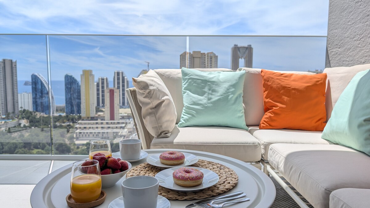Luxurious apartment with terrace with amazing sea views in the state-of-the-art SUNSET CLIFFS building in Benidorm on Poniente beach. This is an extremely beautiful place for your vacation. Feel the charm of the first line of the sea in Spain.