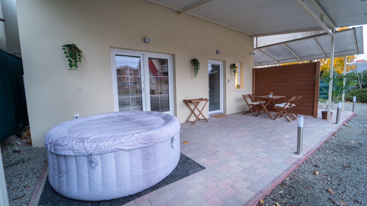 There is also an outdoor hot tub for apartments 2, 4, 5, which can be used for the tenants of these apartments for free!
