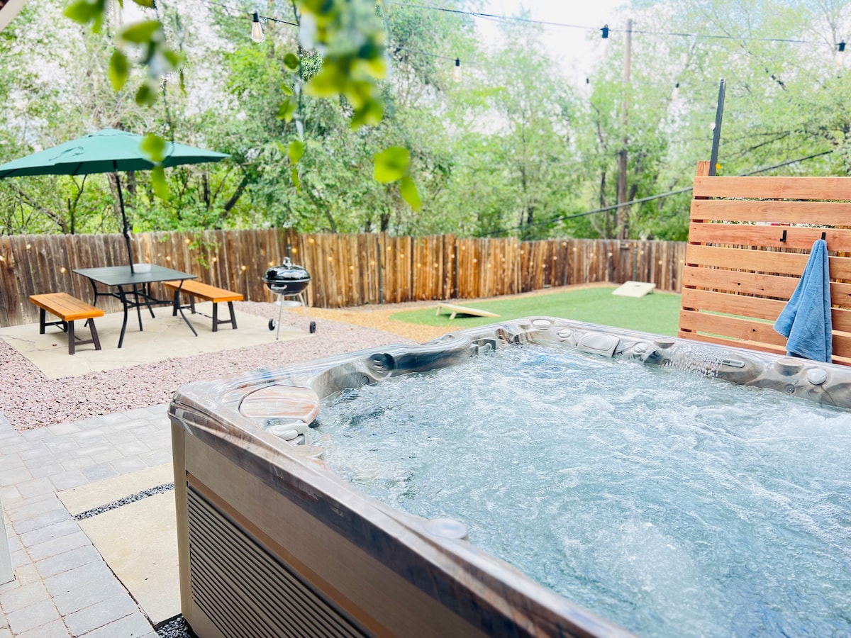 Located on the beautiful west side of Colorado Springs, you are minutes from the Broadmoor Hotel and downtown Colorado Springs. Explore Manitou Springs, Garden of the Gods, Pikes Peaks and dozens of open spaces and hiking trails and so much more that is located right in our backyard! Upon entering, you'll be greeted by an expansive open-plan living area adorned with stylish furnishings and tasteful decor. Enjoy a beautifully landscaped patio equipped with games and a hot tub!