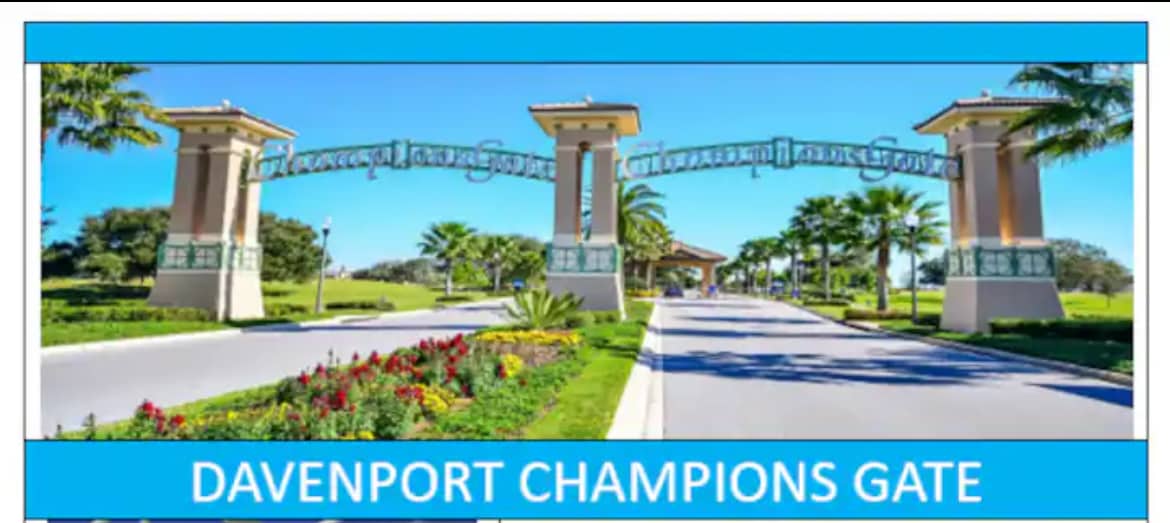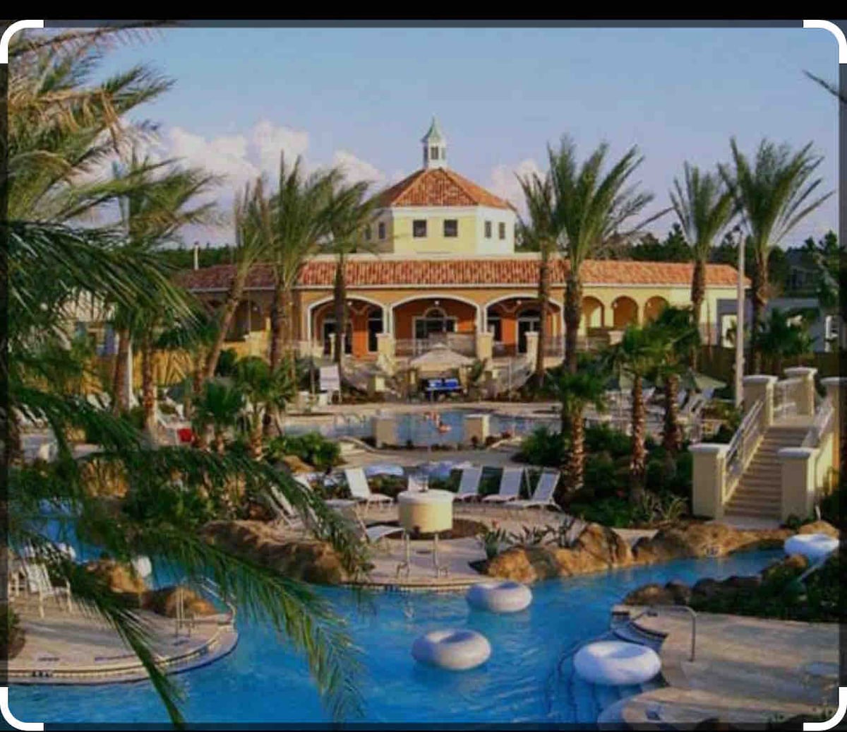 The ChampionsGate Resort Clubhouse includes a resort style pool, water slide, cabanas, lazy river, splash park, tiki bar, fitness center, movie theater, game room, kids play area, tennis court, volleyball court, 18 hole golf course & more!