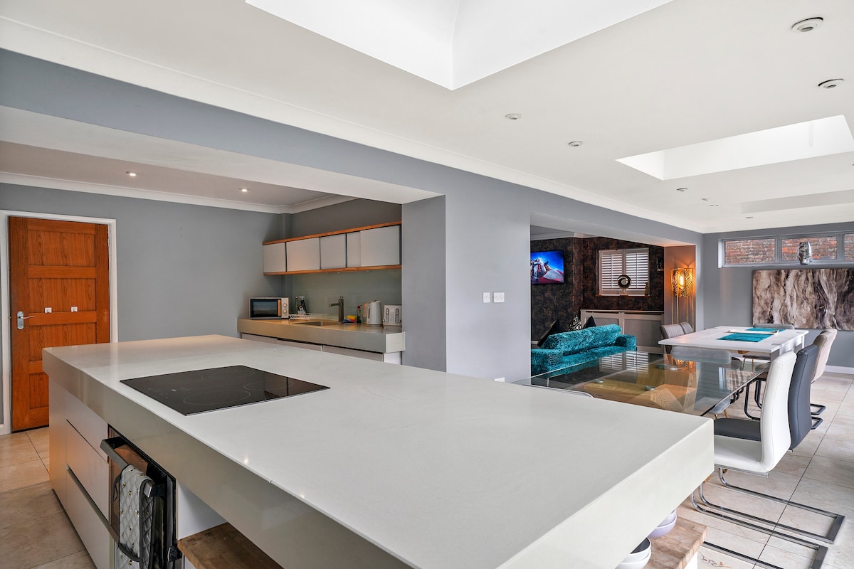 Welcome to our spacious gem house with open airy style of decor. We have a hot tub in the garden to relax and have lovely stay. Perfect stay for contractors or a weekend getaway for groups.